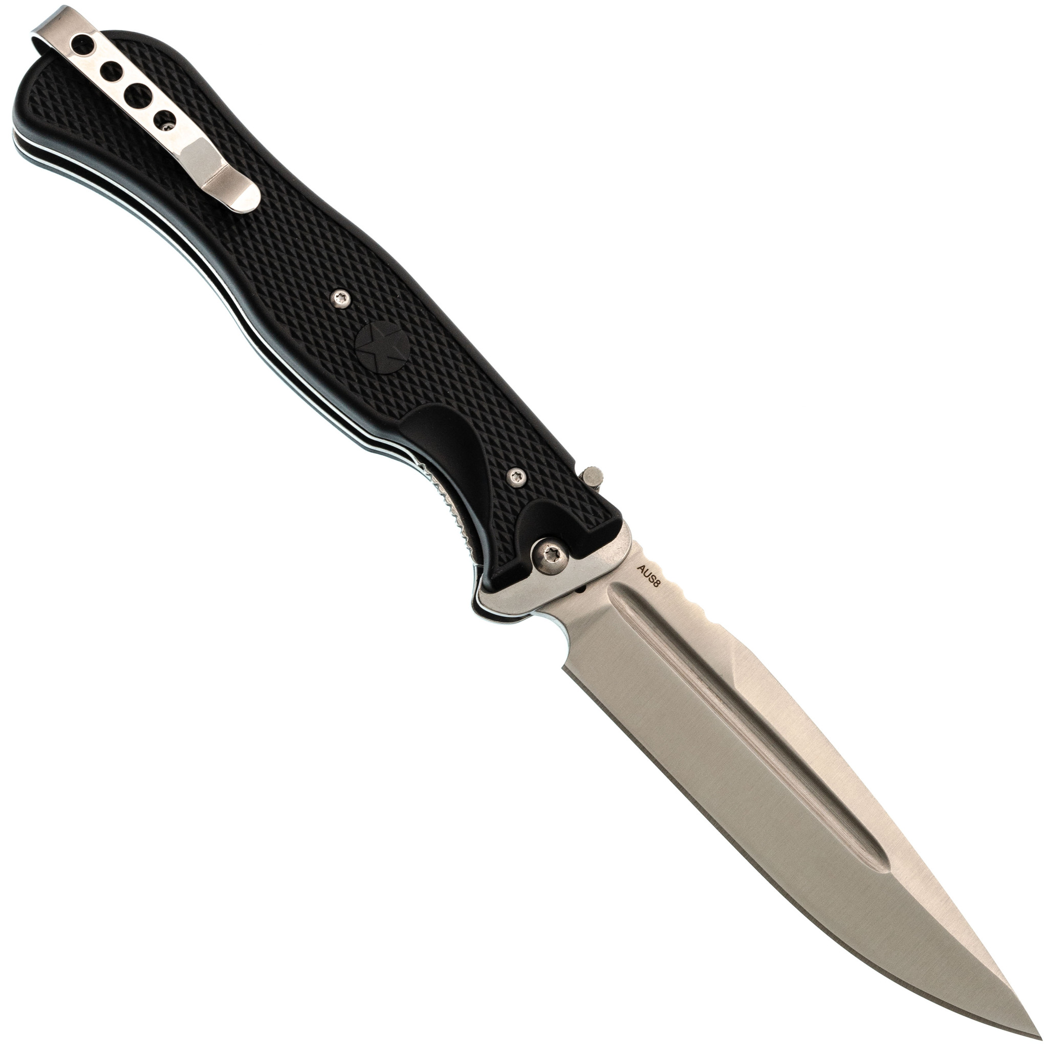 Сталь AUS-8 известна своей прочностью и стойкостью к коррозии, что делает её идеальной для создания надёжных и долговечных клинков. Нанесённое на клинок чёрное покрытие увеличивает его стойкость к внешним воздействиям, обеспечивая долговечность и защиту от влаги и грязи.