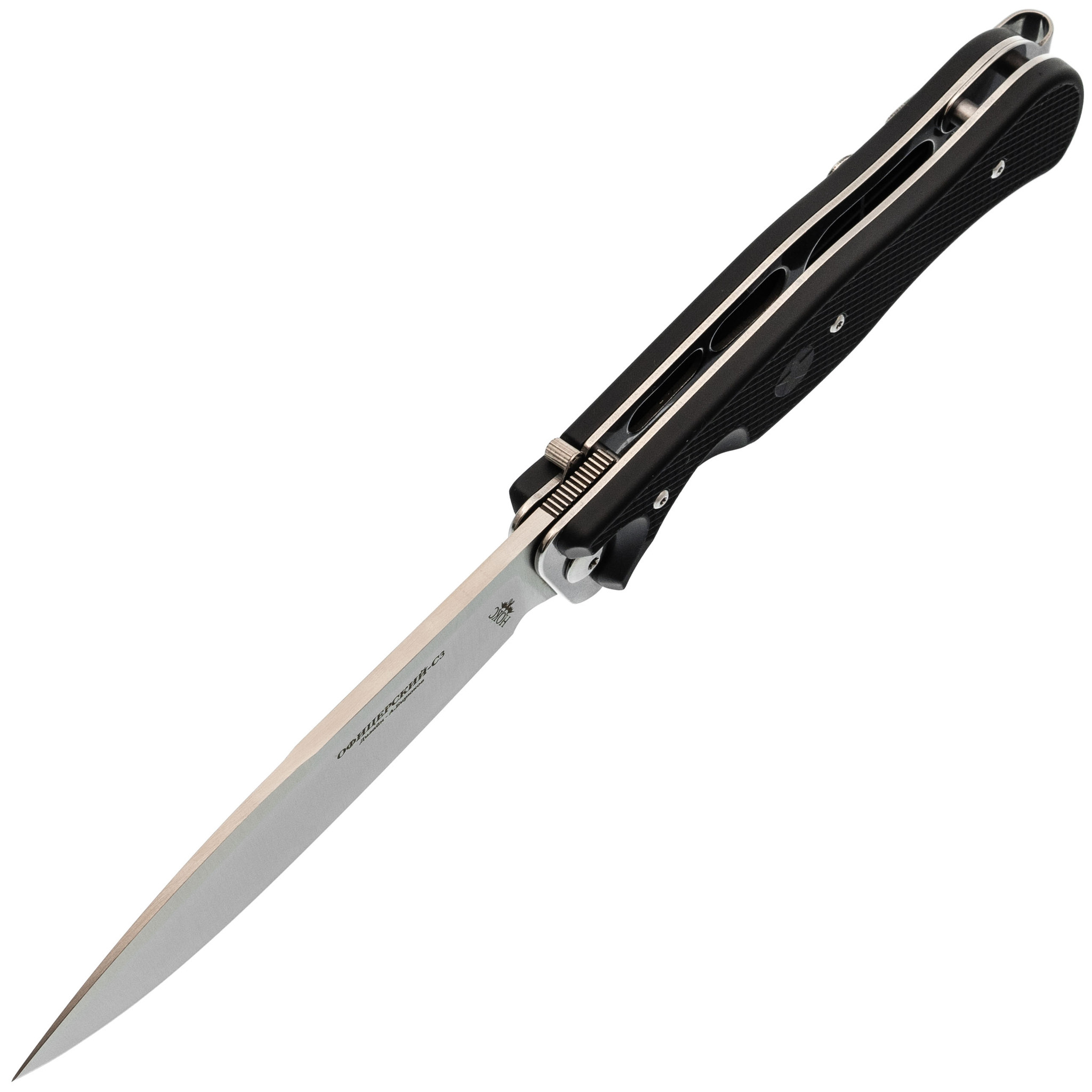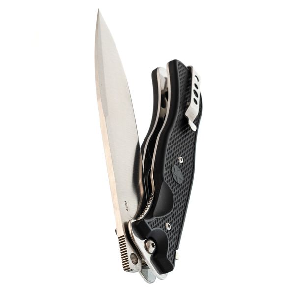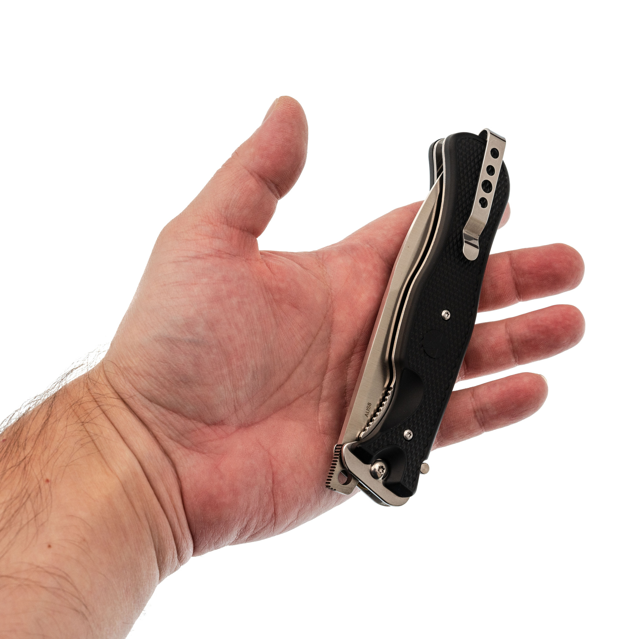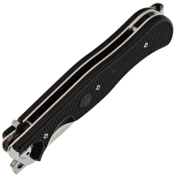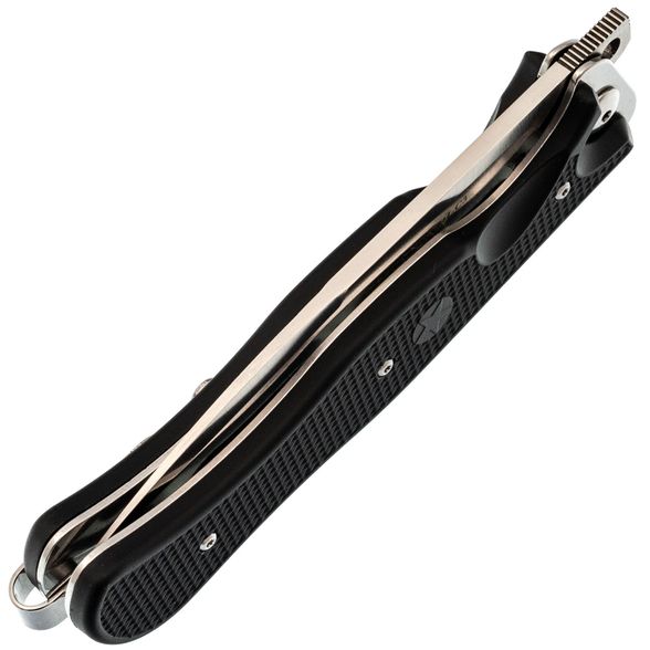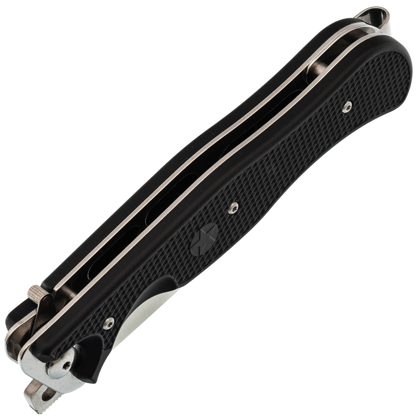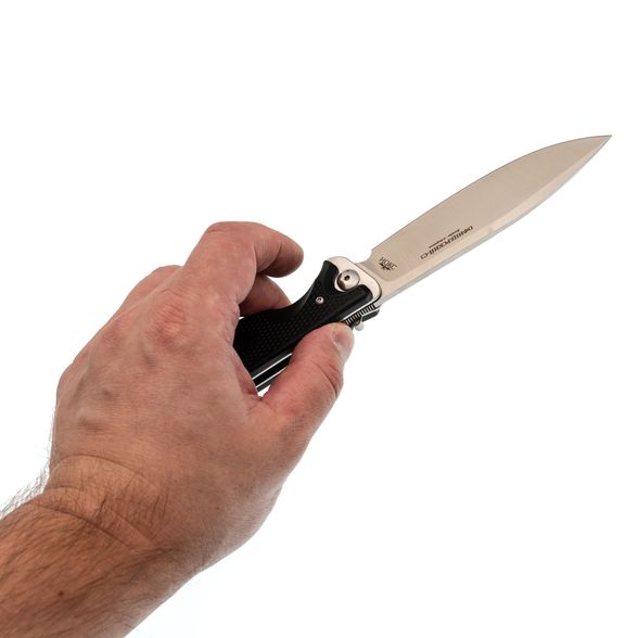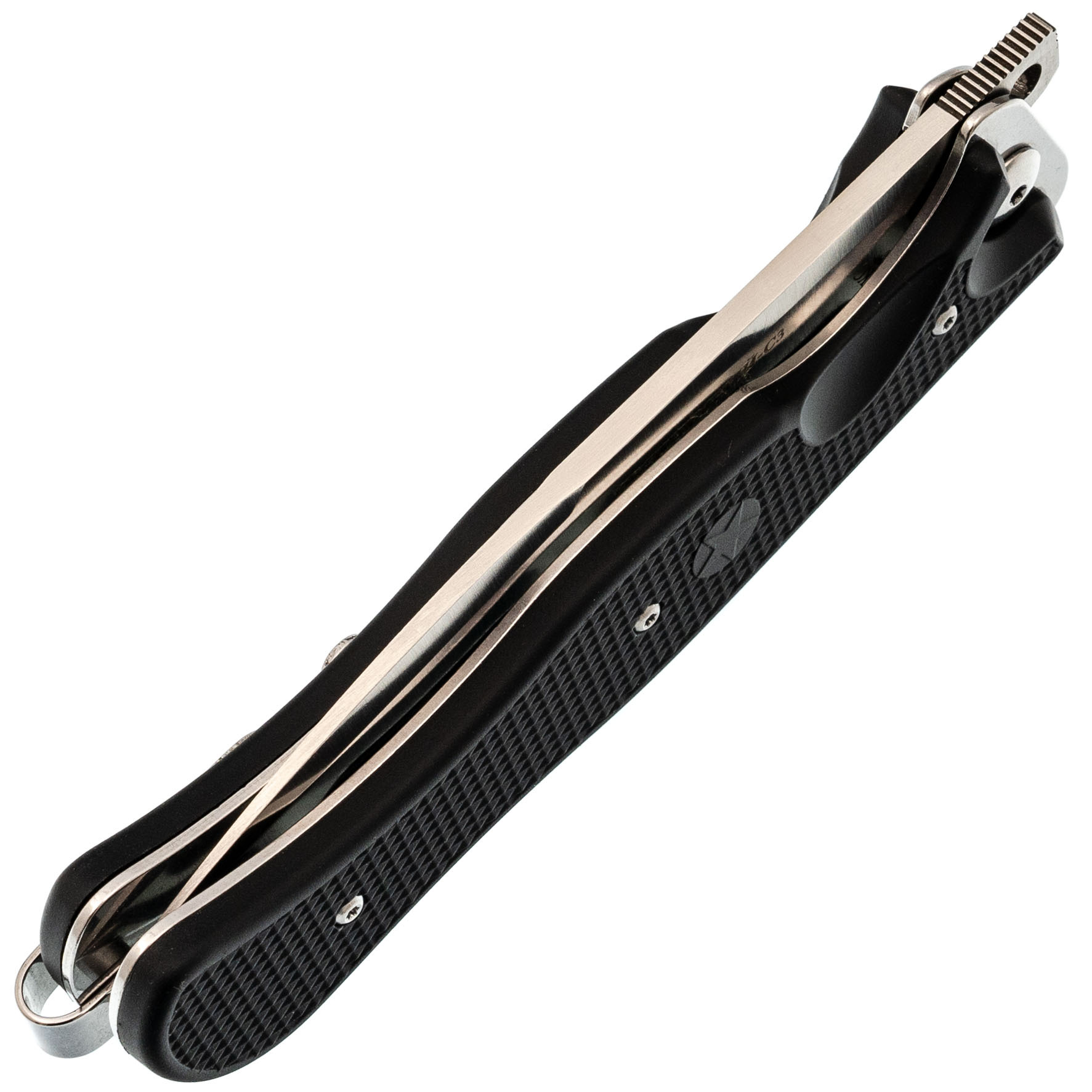 Чёрные накладки на рукояти, выполненные из пластика и нержавеющей стали, обеспечивают отличный хват и прочность. Такие материалы делают рукоять устойчивой к механическим повреждениям и при этом лёгкой для длительного использования.