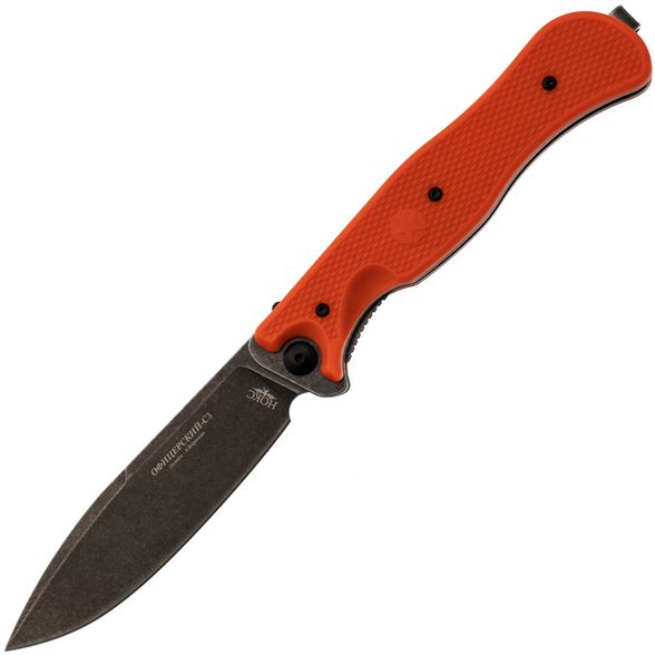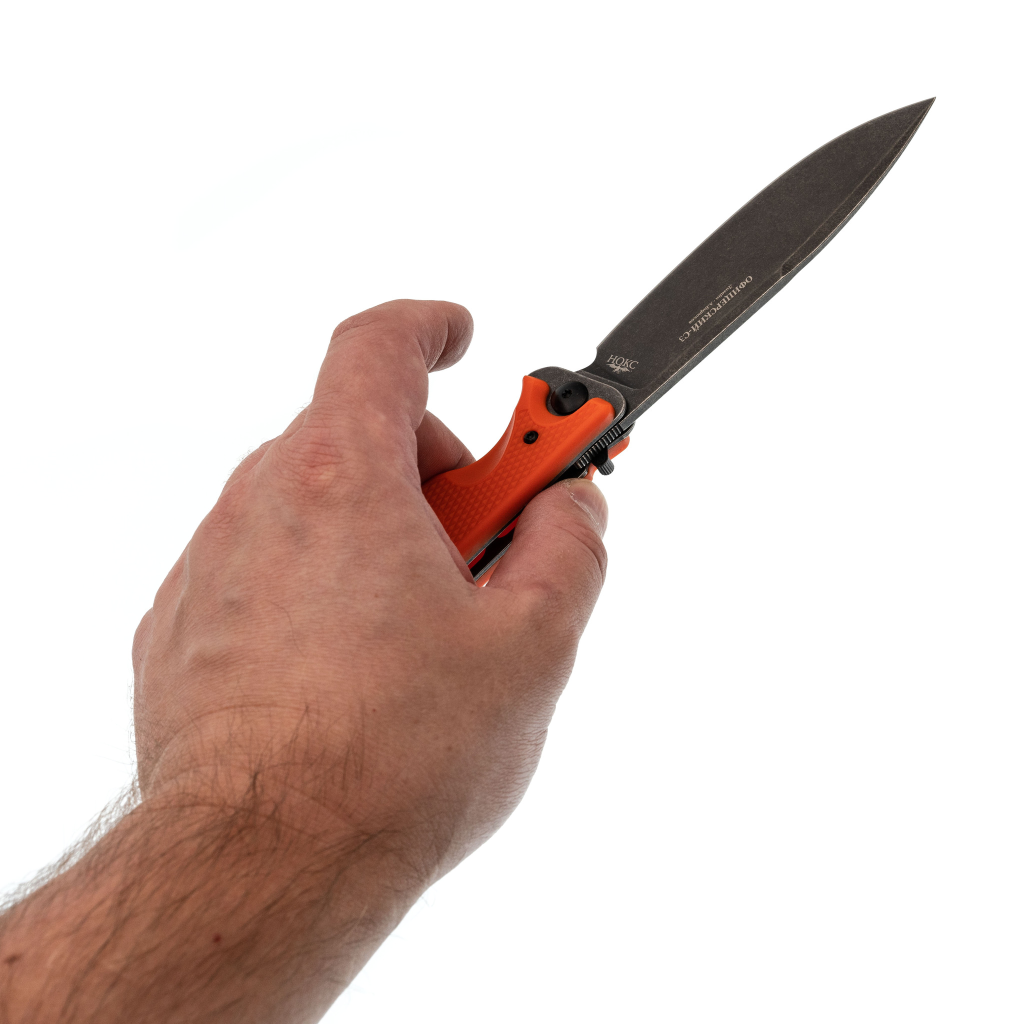Оранжевые накладки из пластика - яркий оранжевый цвет повышает видимость, что важно в условиях походов и активного использования на природе, где заметность может быть критичной. Пластик придаёт рукояти лёгкость и комфорт при использовании.