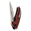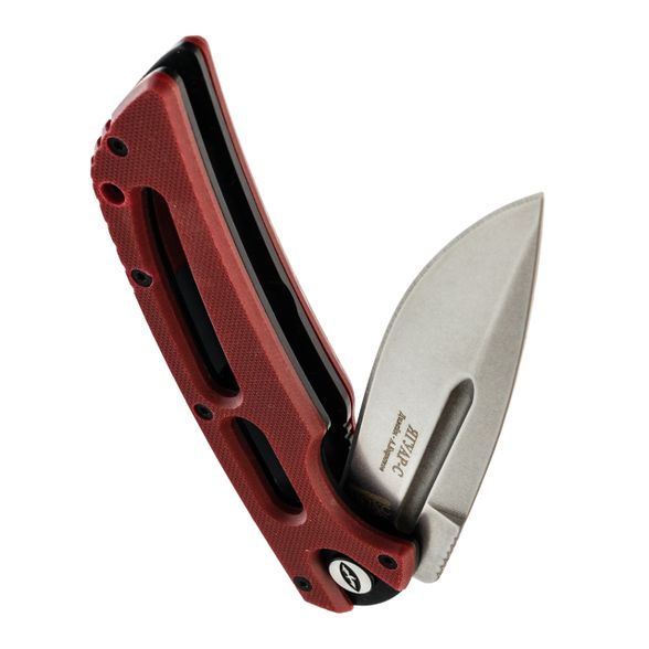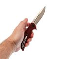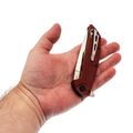 - G10 на рукояти: Это стеклотекстолит, но не пугайтесь слова "стекло". На ощупь - как очень плотный, слегка шершавый текстолит. Он легче алюминия, прочнее многих пластиков и абсолютно равнодушен к морозу, жаре и воде. Если уроните нож в песок или грязь - с ним ничего не случится, а отмыть G10 проще простого, спасибо фактуре и отверстиям.