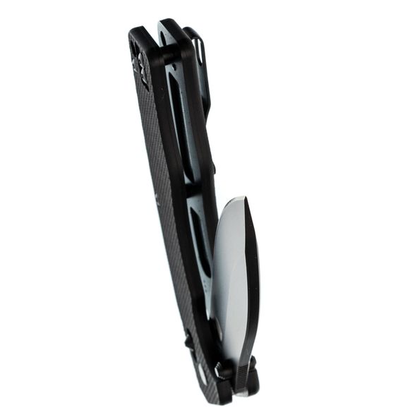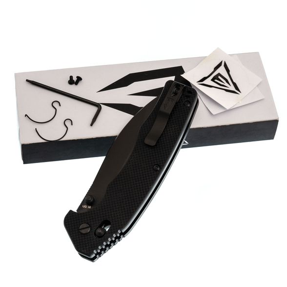 Продуманный замок Crossbar-Lock - собственная доработка Axis-Lock, здесь используются более толстые пружины, а силу закрытия можно регулировать под свои предпочтения. Эргономичная рукоять с двумя подпальцевыми выемками и мощным упором обеспечивает надёжный хват даже в перчатках. Осевой винт под плоский шлиц облегчает обслуживание, а клипса с возможностью перестановки и темлячное отверстие дают свободу в выборе способа ношения.