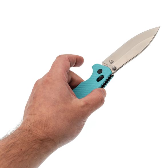 OBERTECH NS-01 - это крупный нож, в котором сочетаются универсальность и прочность. Созданный отечественным брендом, он задуман как инструмент на все случаи жизни: подходит и для походов, и для повседневного ношения, и для самых разных бытовых задач. Цвет рукояти - тиффани, что добавляет яркости и выделяет его среди других моделей. Клинок открывается шпеньком, и это одинаково удобно как для правой, так и для левой руки.