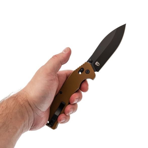 OBERTECH NS-01 - это нож для тех, кто ценит надёжность и предпочитает крупные модели. Дизайн разработан отечественным брендом, и он получился практичным и универсальным. Такой нож удобно использовать и в городе, и на природе. Рукоять в цвете «койот» придаёт модели строгий, сдержанный облик. Клинок открывается шпеньком, поэтому одинаково удобен для правшей и левшей.