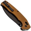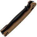 Изогнутая рукоять с подпальцевыми выемками обеспечивает удобный и уверенный хват. Положение рукояти выше линии клинка даёт возможность комфортно резать на доске или другой ровной поверхности. Карманная клипса глубокой посадки позволяет носить нож скрытно. Есть отверстие для темляка. Надёжный замок Crossbar-Lock работает мягко и позволяет управлять ножом любой рукой, в том числе инерционно.