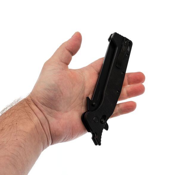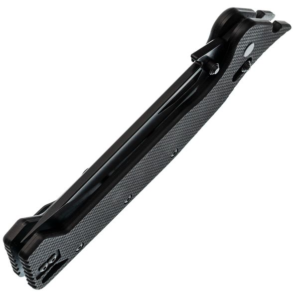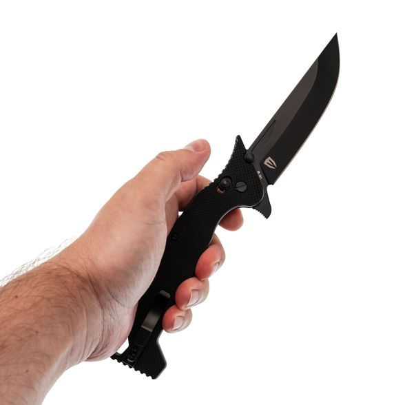 Клинок Normal Blade с прямой линией обуха и солидной толщиной обеспечивает уверенную работу в различных сценариях. Прямые спуски от середины клинка и универсальный профиль позволяют легко справляться с точным и силовым резом. Предусмотрено множество способов открытия: плавник, шпенёк для обеих рук, выборка, wave-открытие об карман и инерция - выбор остается за пользователем.