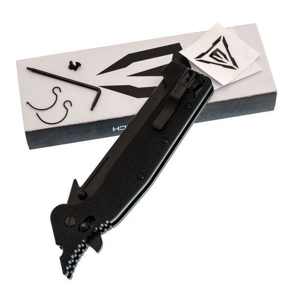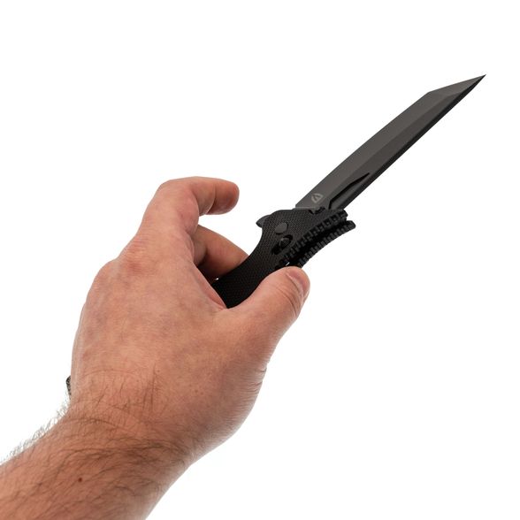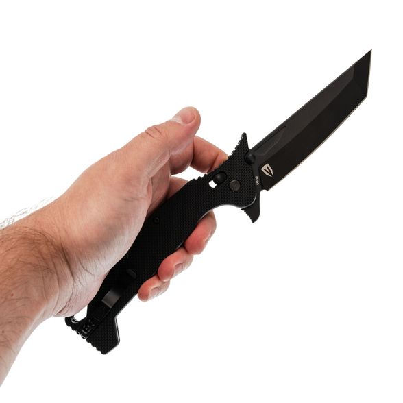 Клинок с универсальным профилем Tanto отличается выраженной геометрией, увеличенной шириной и толщиной, что гарантирует запас прочности и удобство для разных задач. Прямые спуски от середины клинка способствуют уверенной работе как по твёрдым, так и по мягким материалам. Для открытия предусмотрено сразу несколько способов: плавник, двусторонний шпенёк, выемка в клинке, система Wave для моментального извлечения с кармана, а также инерционное открытие.