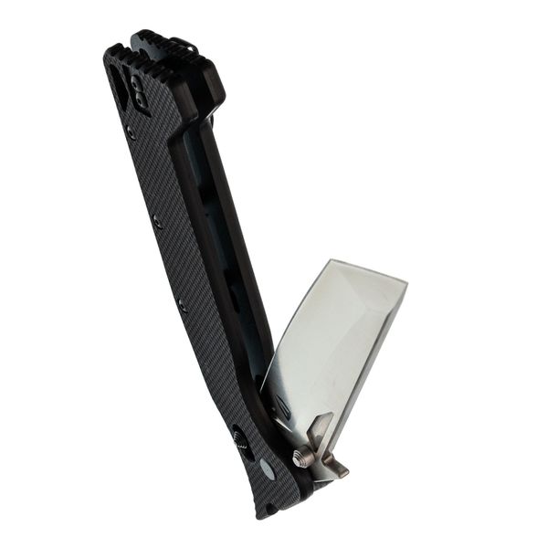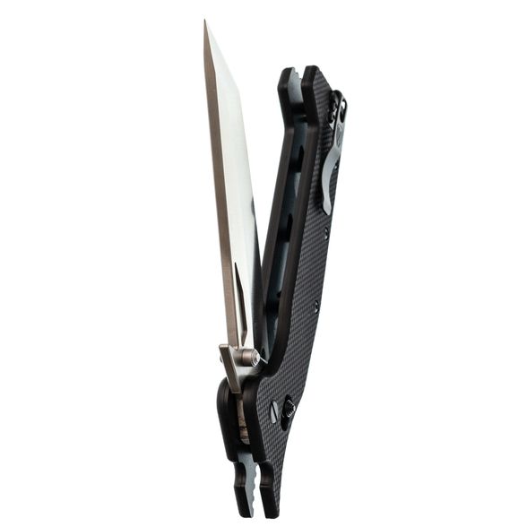 Рукоять спроектирована с акцентом на эргономику: глубокая пятерневая выемка и крупный упор защищают ладонь при работе. Система Crossbar-Lock (усовершенствованный аналог Axis-Lock) оснащена толстыми пружинами и возможностью регулировки, что даёт дополнительную уверенность и долговечность. Клипса регулируется по положению, есть удобное темлячное отверстие и возможность быстрой настройки осевого узла.