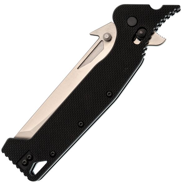 Профиль Tanto с прямой линией обуха позволяет уверенно справляться с резом и контролировать инструмент в любой ситуации. Прямые спуски от середины клинка, значительная толщина и ширина создают запас прочности, который оценят любители сложных задач. Разнообразие вариантов открытия - плавник, шпенёк с обеих сторон, выборка, wave и инерция - обеспечивают быстрый доступ к клинку в любых условиях.