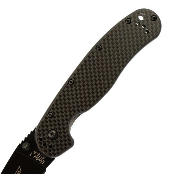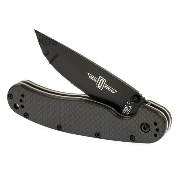 Складной нож Ontario RAT I, черный, Carbon Fiber - один из наиболее популярных и востребованных ножей, так называемая "крыса". В нем удачно соединены эргономичный дизайн и высокое качество от бренда Ontario Knife Company. Выполнен складной нож крыса Ontario Rat 1 из японской стали AUS-8 с отличными показателями твердости и антикоррозийности. Рукоять из практичного черного нейлона удобно ложится в руку и совершенно не скользит. Лезвие раскрывается при помощи двухстороннего шпенька и удерживается системой Liner Lock.