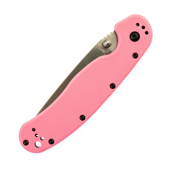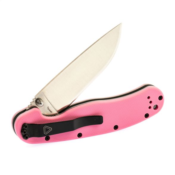 Складной нож Ontario RAT I с белым клинком и розовой рукоятью от именитого американского бренда - это надежный инструмент, используемый для походов, загородных вылазок и повседневного использования. Последние восемь лет данная модель считается наиболее популярной во всем мире. Нож Онтарио РАТ 1 (крыса) оригинал выполнен из стали марки AUS-8, спуски от самого обуха на клинке гарантируют максимально удобный рез. Фиксирование обеспечивается надежной системой Liner Lock. Клипса ножа имеет четыре позиции, чтобы и правша, и левша могли пользоваться ей с одинаковым удобством.