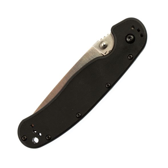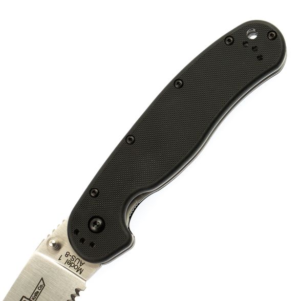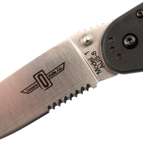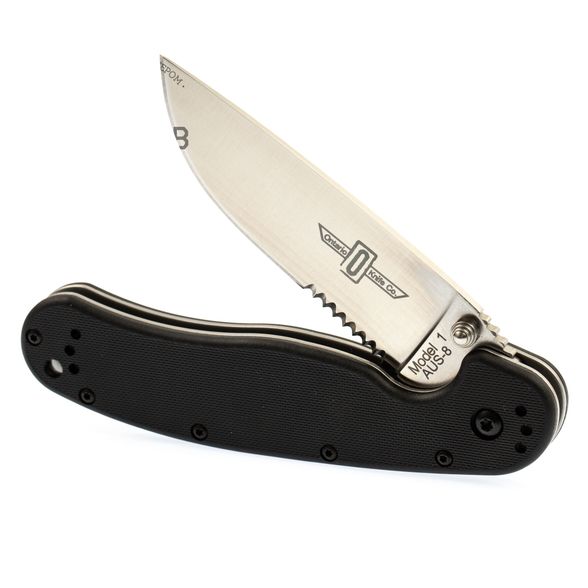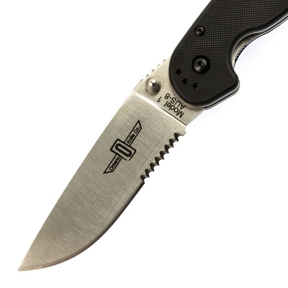 Нож складной полусеррейторный Ontario RAT-1, сталь Aus-8. Клинок - Satin, Рукоять - Black GRN - превосходная разработка компании Randall's Adventure & Training, выпускаемая Ontario Knife Company (OKC). Этот нож разработан для удобства и производительности с выемкой для указательного пальца на рукоятке, чтобы держать руку там, где она должна быть, и выемкой на спинке клинка для контролируемого реза. Рукоятка имеет текстурированную чешую с открытым фреймом. Ontario RAT Model 1 - это прочный, высококачественный нож по невероятной цене!