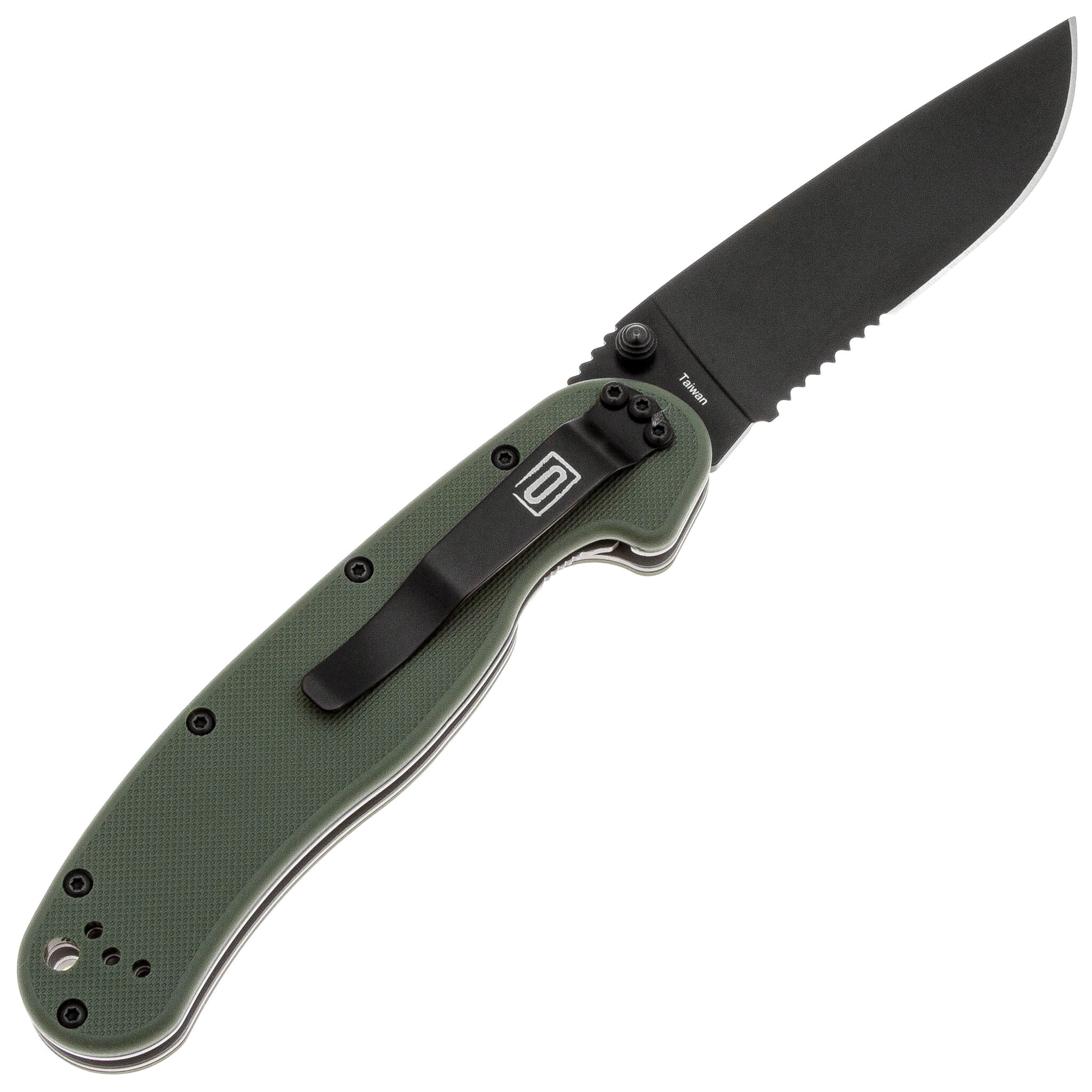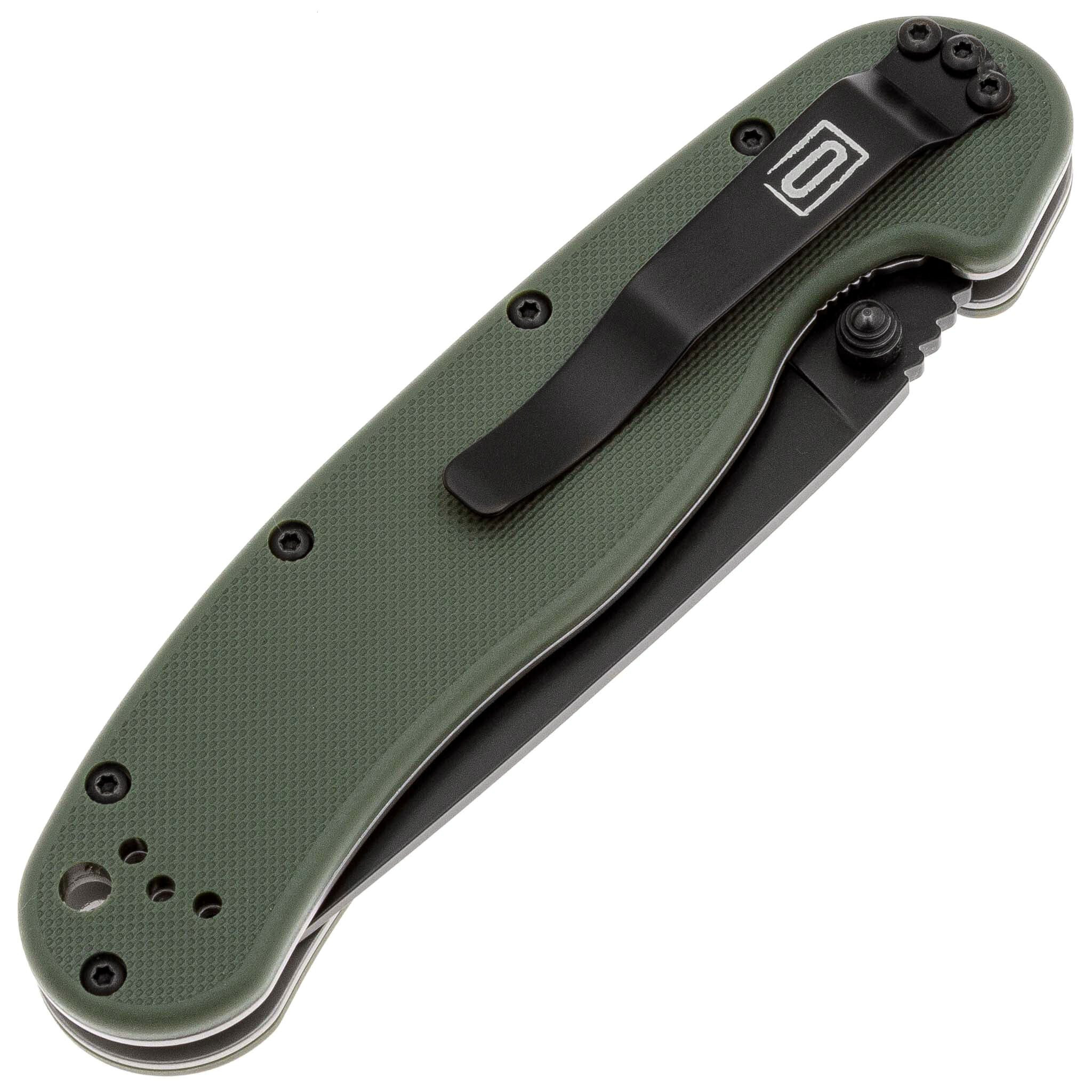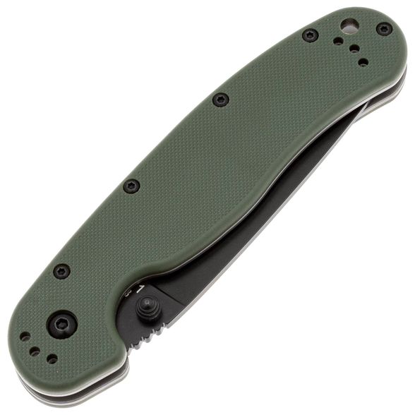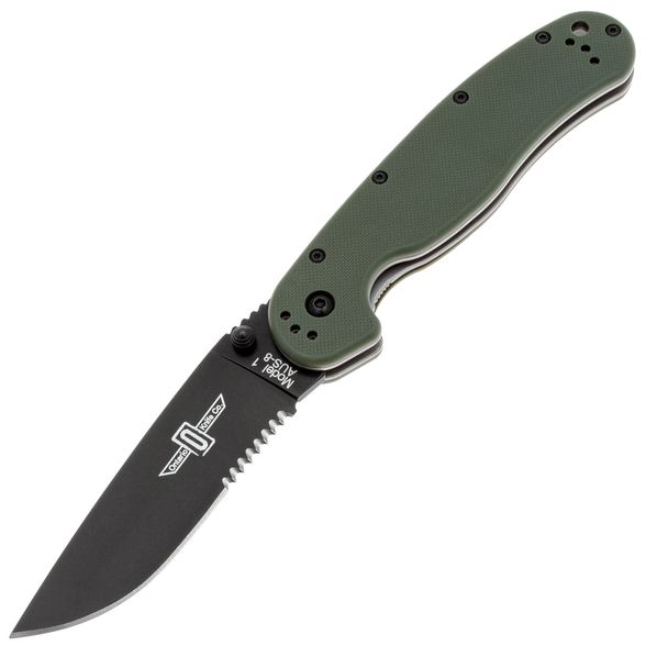 Складной нож полусеррейторный Ontario RAT 1, сталь AUS-8, рукоять термопластик GRN, зеленый/черный