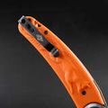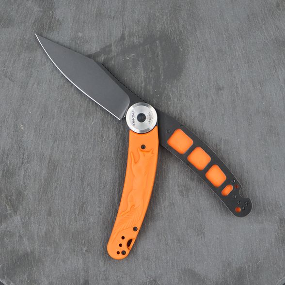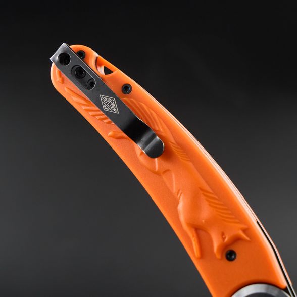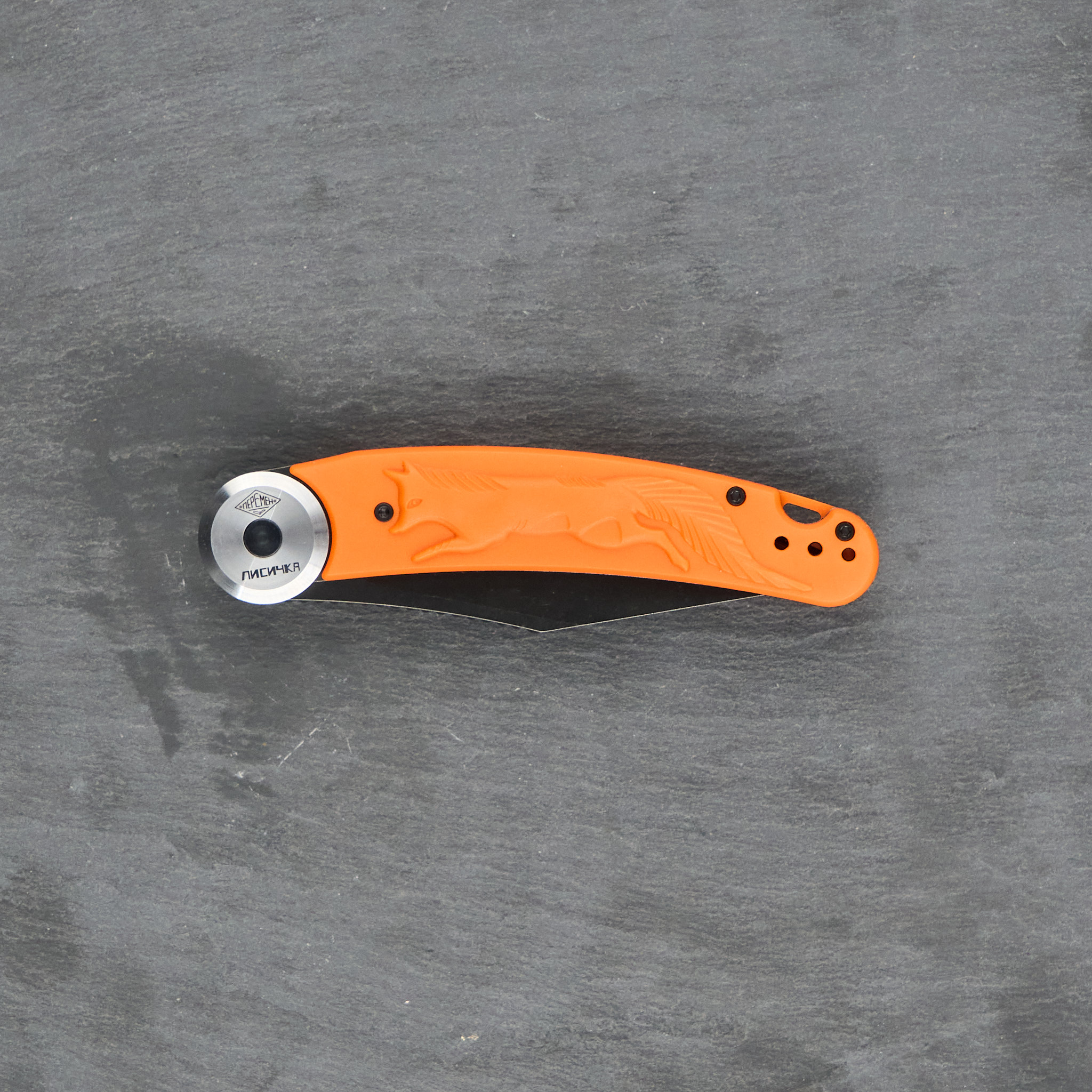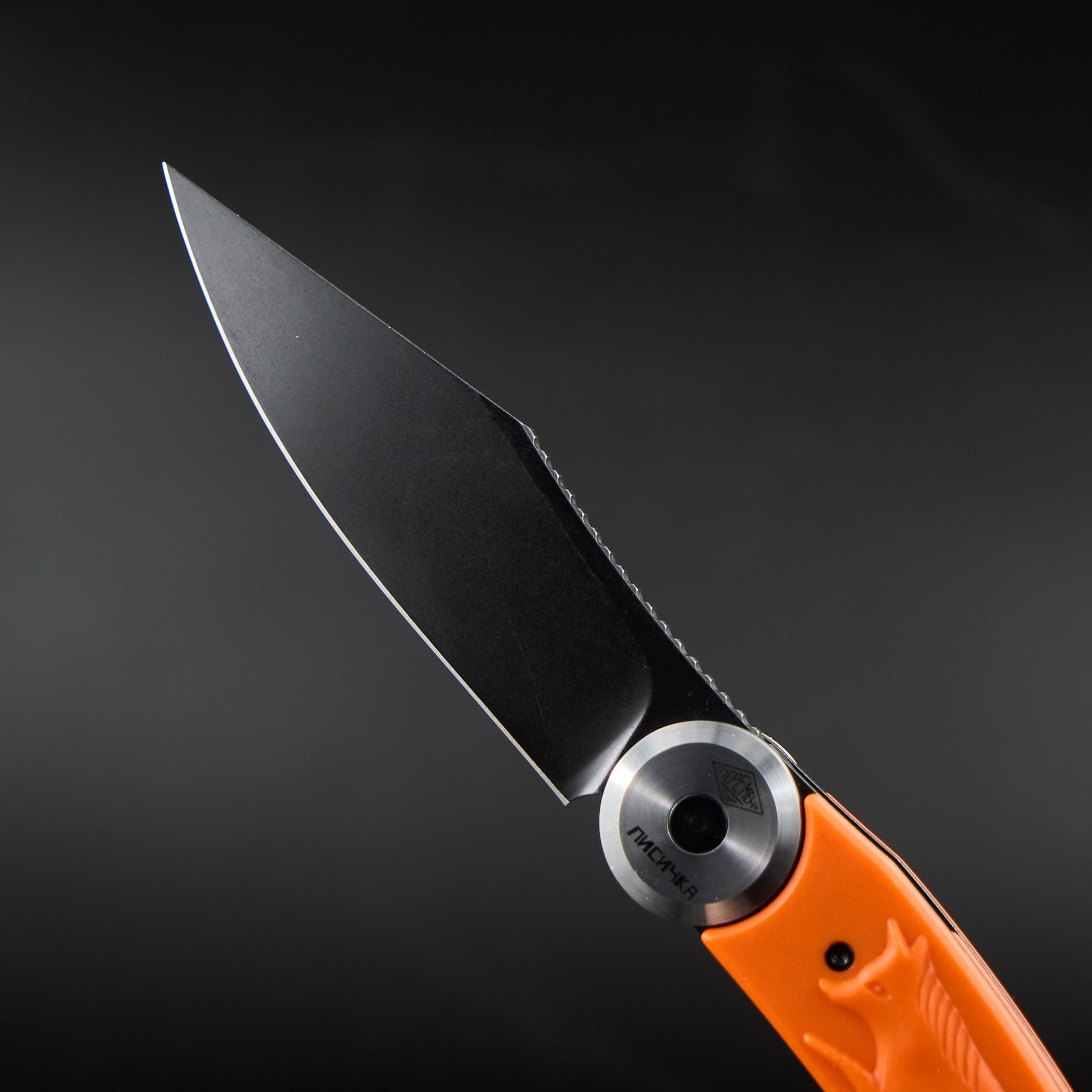 Яркая оранжевая рукоять сразу бросается в глаза. Это практичный цвет для тех, кто не хочет искать нож в траве или сумерках. На накладках нанесено изображение лисы, давшее имя модели. Сам механизм - рамочный замок с поворотной конструкцией. Это решение обеспечивает монолитность ножа в рабочем положении. Он не откроется сам и не закроется во время работы. Пусть он и требует двух рук для открытия, но взамен вы получаете абсолютную безопасность и жесткость, которой могут позавидовать многие современные "автоматы".