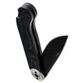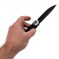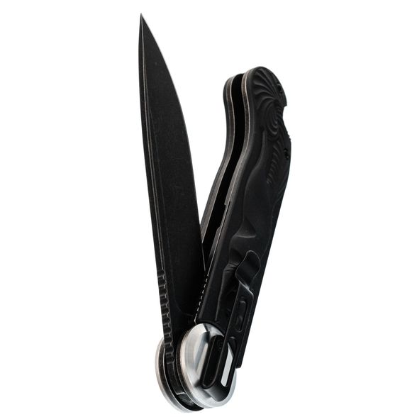 Клинок ножа изготовлен из стали 8Cr14MoV – простой и надежной нержавеющей стали, устойчивой к коррозии, легкой в заточке и обладающей высокой ударной вязкостью. Профиль клинка выполнен в классической форме Drop-Point, что делает его универсальным и функциональным, а прямые спуски от обуха обеспечивают отличные режущие свойства. Черное покрытие Black Stonewash защищает клинок от коррозии и придает ему стильный внешний вид.