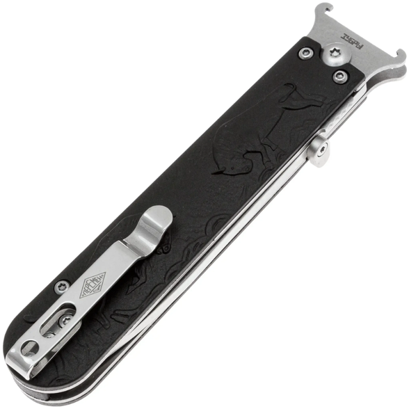Форма Drop-Point - универсальное решение на все случаи. Высокие спуски обеспечивают чистый рез, а шпенёк открывания делает использование интуитивным. Клинок не требует привыкания - он сразу "в своём деле".
