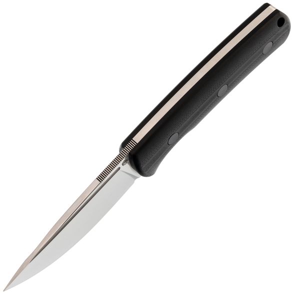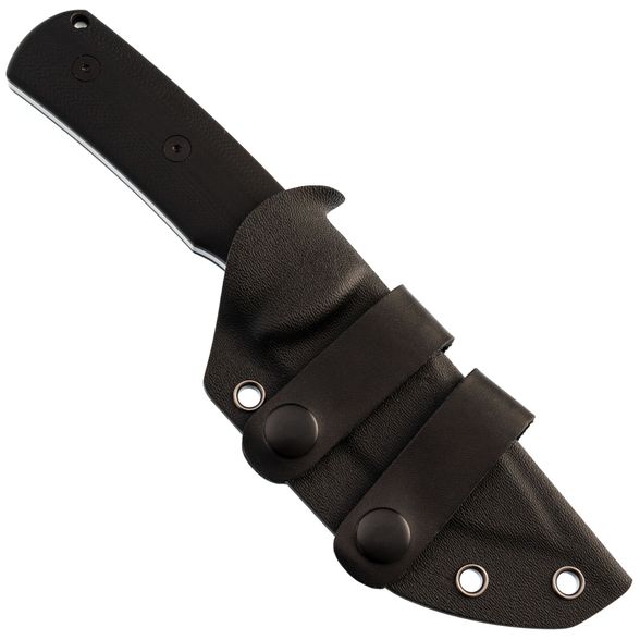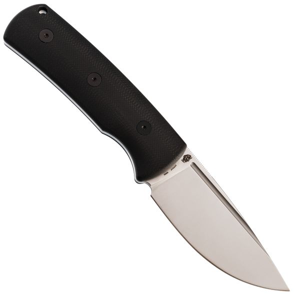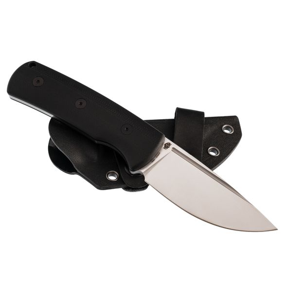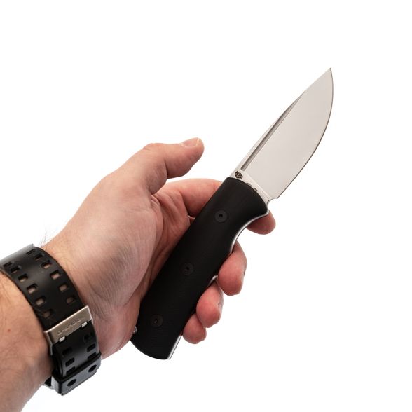 Прочная фиксированная конструкция. Клинком выполняют сложные операции резом различных материалов, в том числе плотных, когда требуется значительное усилие. В этом также помогает рукоять с удобной анатомической формой. Изготовлена она из термопластичного материала под названием G10 и микарта. Для уверенного удержания режущего походного аксессуара на ручке имеются текстура. Чтобы не потерять нож, производитель предусмотрел круглое отверстие для шнурка.
