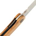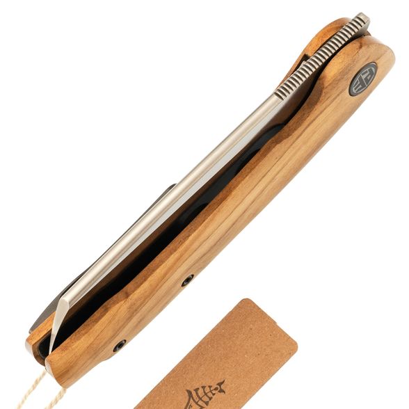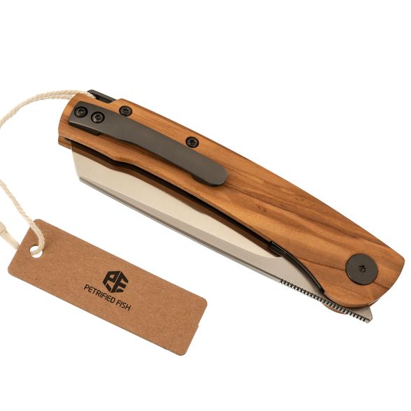 Рукоять из оливкового дерева придаёт ножу изысканность и естественную красоту. Мягкий и надёжный Liner-Lock замок обеспечивает комфортное и безопасное использование. Титановые клипса и спейсер делают нож лёгким, а большое темлячное отверстие позволяет навесить темляк любых размеров. Petrified Fish Scholar - это нож, который сочетает в себе уникальный внешний вид и практичность в повседневной жизни.