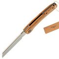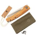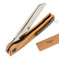 Клинок изготовлен из высококачественной стали 154CM, что обеспечивает отличную стойкость к коррозии и хорошую удерживаемость остроты. Вогнутые спуски, типичные для бритвенных лезвий, делают режущую кромку невероятно острой, идеально подходя для надрезов. Форма Sheep-Foot позволяет легко контролировать движение ножа, а прямая кромка упрощает заточку. Скруглённый обух добавляет оригинальности и стиля.