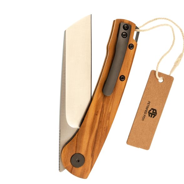 Petrified Fish Scholar является уникальным предложением для тех, кто ценит эстетику опасных бритв. Его дизайн вдохновлён этими инструментами, но при этом нож сохраняет свою универсальность и практичность в повседневном использовании.