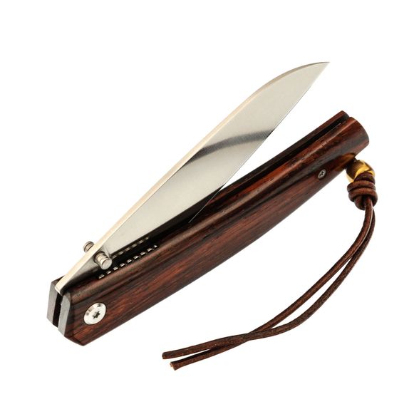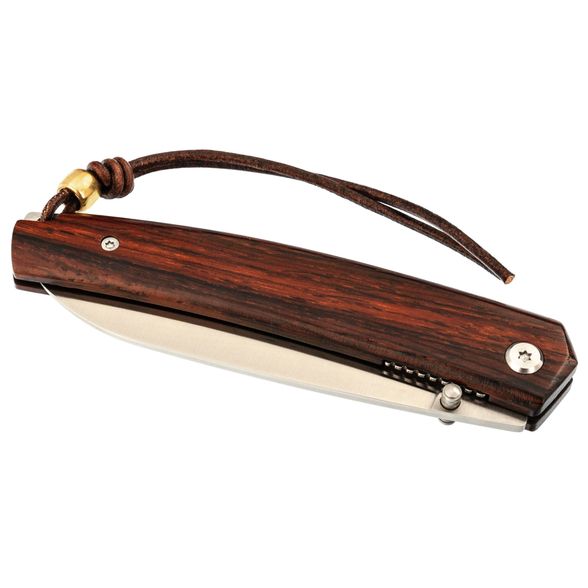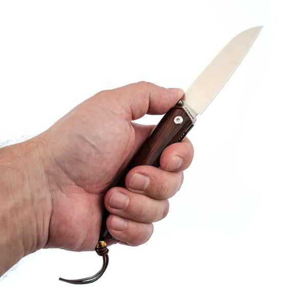 В данной категории ножей использована изысканная рукоять из натурального дерева. Нож представляет собой идеальное сочетание стиля и функциональности. Уникальное объединение прочности и визуальной привлекательности делает аксессуар востребованным среди ценителей искусства ножевого дела, поэтому часто выбирается на каждый день, как средство решения любых задач. Ручка сделана из долговечного и износостойкого материала G10, являющегося стекловолокном, пропитанным в эпоксидной смоле. В рукоятке имеется отверстие, через которое прикреплен темляк из кожаного шнура. Имеет древесный цвет, но также есть версии Green и Black.