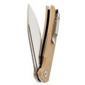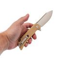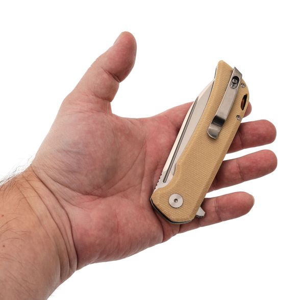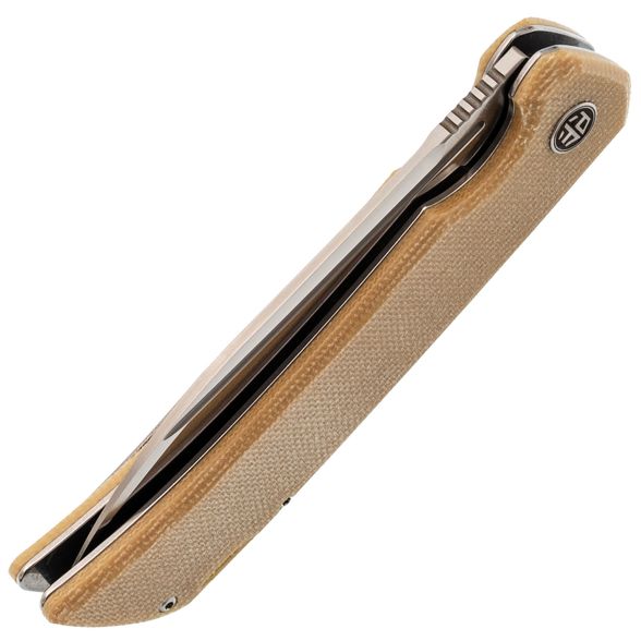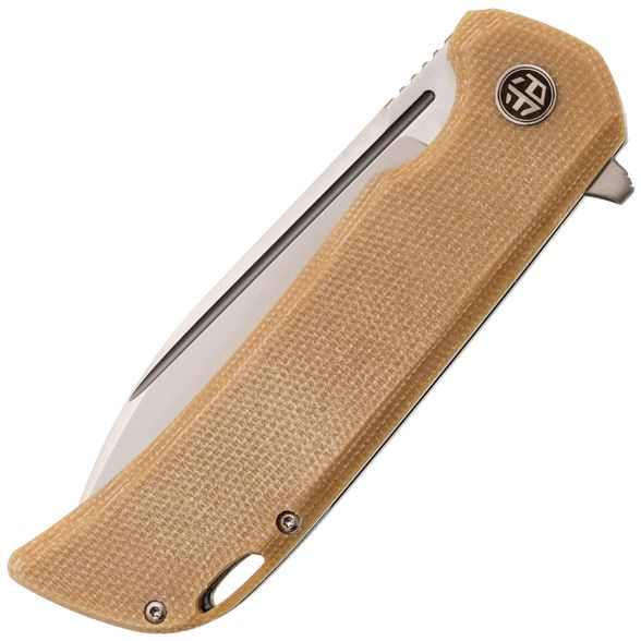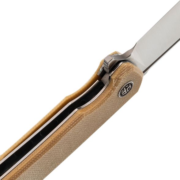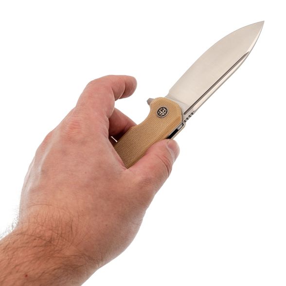 Рукоять из микарты - прочного и надежного материала, который не боится влаги и различных погодных условий. Микарта приятная на ощупь, с теплым и бархатистым ощущением. Форма рукояти удобно ложится в руку: пистолетный изгиб, флиппер и подпальцевая выемка обеспечивают надежный хват. Замок Liner-Lock прост в использовании и надежен, а благодаря фрезеровке не имеет острых граней, что удобно при закрытии и закрытии ножа.