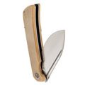 Клинок изготовлен из популярной нержавеющей стали Sandvik 14C28N, которая стала отличным выбором для бюджетных ножей. Эта сталь позволяет достичь высокой твердости, что обеспечивает отличную удерживаемость заточки и возможность затачивать клинок на малые углы, что напрямую влияет на режущие свойства. Универсальный профиль клинка позволяет справляться с различными задачами, а его ширина и прямые спуски делают его невероятно эффективным при резе.
