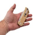 Petrified Fish Tunny - это складной нож, который своим уникальным дизайном действительно напоминает тунец, с его пузатым и обтекаемым силуэтом. Эта модель идеально подойдет любителям крупных ножей и тем, у кого большие руки. Бренд Petrified Fish славится своим вниманием к деталям и качеством сборки: каждый нож тщательно собран и отрегулирован, обеспечивая плавную и надежную механику.
