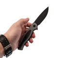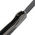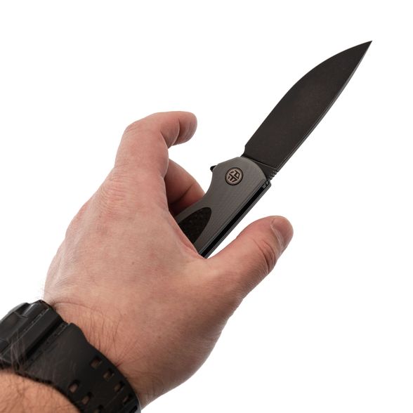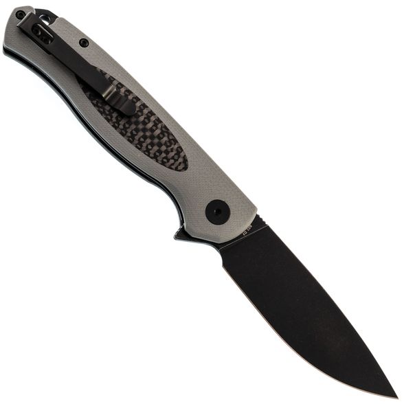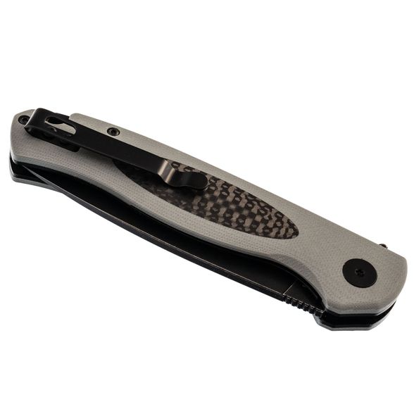 Рукоять из G10 с карбоновой вставкой делаетет в себе легкость, прочность и привлекательный дизайн. Ее эргономичная форма надежно фиксирует нож в руке, а объемные накладки обеспечивают комфорт при длительной работе. Liner-Lock замок надежно удерживает клинок в открытом положении. Карманная клипса и темлячное отверстие делают ношение и персонализацию ножа еще более удобными. Этот нож - отличный выбор для тех, кто ценит утилитарность и функциональность в повседневном инструменте.