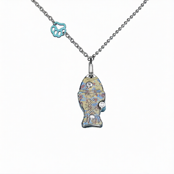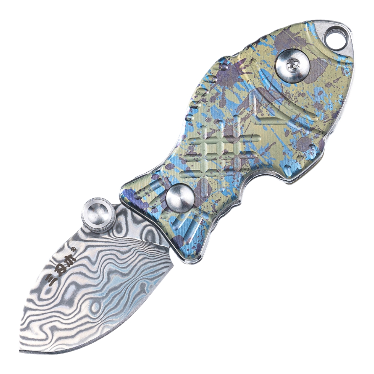 Складной нож-подвеска Sanrenmu 6171-TX, сталь Дамаск, рукоять титан