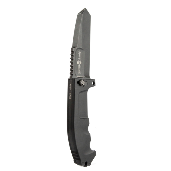 Итальянский нож Extrema Ratio RAO 2 Black-2 - небольшой режущий инструмент, который оснащен рабочим клинком компактных размеров и надежной системой фиксации лезвия с дополнительным замком. Станет хорошим выбором для решения задач выживания и выполнения тяжелых работ. Толстый клинок имеет фальшлезвие в половину длины самого клинка и короткий широкий дол. Внушительный вес клинка позволяет легко извлекать его одной рукой.