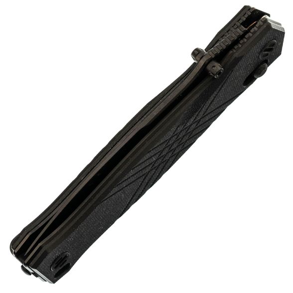 Рукоять Muninn изготовлена из стальных лайнеров и накладок из стеклотекстолита G10 — прочного и надежного материала, обладающего всеми важными для складных ножей свойствами. Дизайнер уделил особое внимание форме рукояти, благодаря чему она удобно лежит в руке и обеспечивает уверенный хват. Замок Slide-Lock, используемый в модели, аналогичен известному замку Axis-Lock и обеспечивает высокую надежность. Он одинаково удобен как для правшей, так и для левшей. Переставляемая клипса делает Muninn полностью обоерукой моделью.