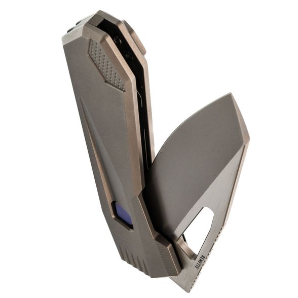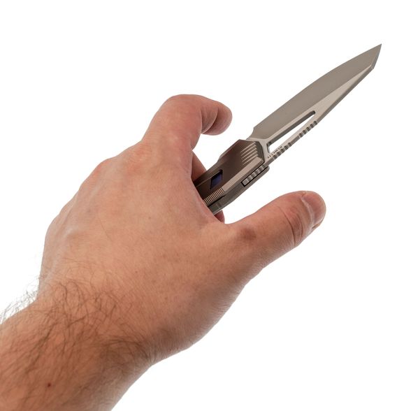 Рукоять из титана в сером исполнении сочетает легкость, прочность и минималистичный внешний вид. Эргономичная форма корпуса обеспечивает удобный хват при длительной работе, а карманная клипса позволяет надежно фиксировать инструмент при ношении. Agile Peregrine Falcon от Remette - это функциональная и стильная модель, в которой сочетаются динамичный дизайн и фирменное качество бренда.