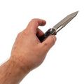 Уникальная особенность Remette Peregrine Falcon - усовершенствованный механизм замка Liner-Lock: закрытие происходит нажатием кнопки, встроенной в осевой узел. Эта инновационная конструкция позволяет как плавно, так и инерционно управлять лезвием. Удобство в эксплуатации дополняется цельнофрезерованной клипсой, обеспечивающей надежную фиксацию ножа в кармане или на снаряжении.