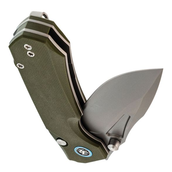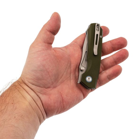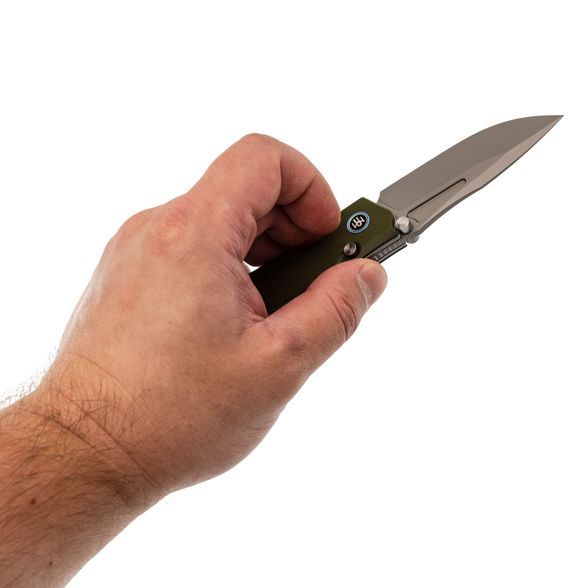 Клинок ножа выполнен с универсальным профилем Drop-Point, что делает его отличным решением для большинства задач EDC. Высокие спуски способствуют лёгкому резу, а благодаря особой термообработке сталь D2 сохраняет остроту длительное время. Для удобства предусмотрены три варианта открытия - шпеньки для обеих рук, фронт-флиппер или инерционное открытие за выборки на клинке.
