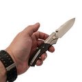 Remette WD107 - это складной нож, сочетающий в себе изящный дизайн и высокую функциональность. Он привлекает вниманием проработанностью к деталей: овальной кнопкой замка Button-Lock, что является редким дизайнерским решением и придает ножу индивидуальность. Так же внимания заслуживают шпеньки: они имеют уникальную форму, что делает их еще одной отличительной чертой модели.