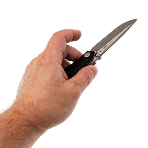 Универсальный профиль Drop-Point с высокими прямыми спусками позволяет уверенно резать как мягкие, так и твёрдые материалы. Клинок отлично подходит для работы по продуктам, упаковке, дереву или тканям. Шпеньки и фронтальный флиппер обеспечивают быстрый и плавный доступ к клинку с любой стороны, что особенно удобно в условиях ограниченного времени или когда заняты обе руки.