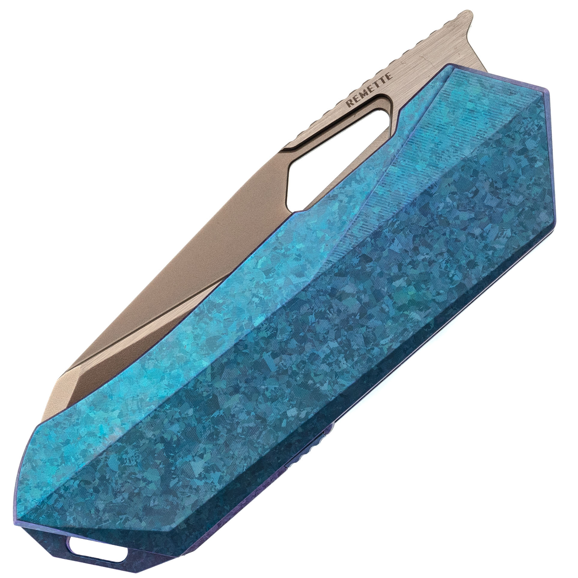 Рукоять из титана оформлена в насыщенном синем цвете, что придает модели выразительность и подчеркивает ее современный характер. Текстурированная поверхность и анатомический профиль обеспечивают уверенный хват, исключая проскальзывание даже при влажных условиях. Конструкция выдерживает длительное использование без потери эргономики, а легкость материала снижает усталость при работе. Точная подгонка деталей и надежная сборка подчеркивают общее качество исполнения, соответствующее философии бренда Remette.