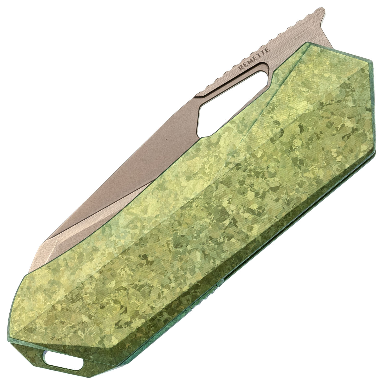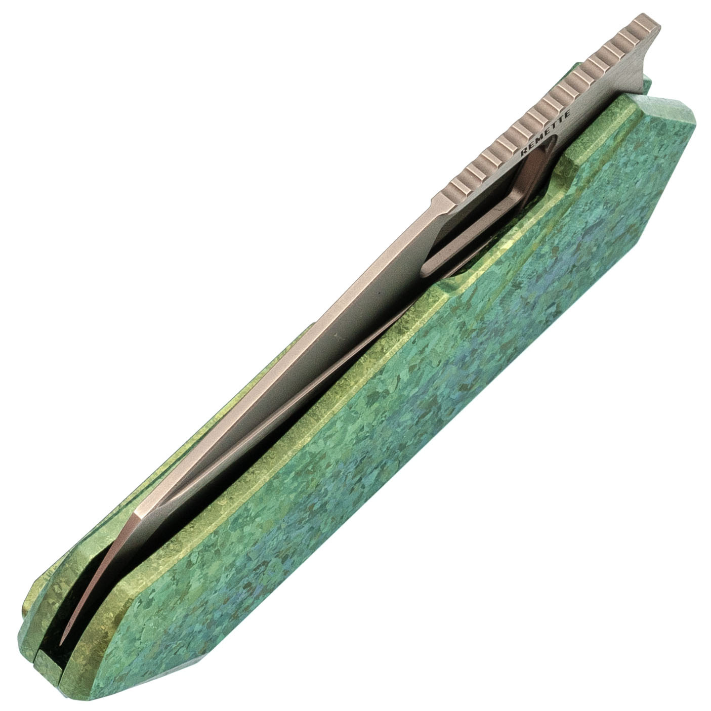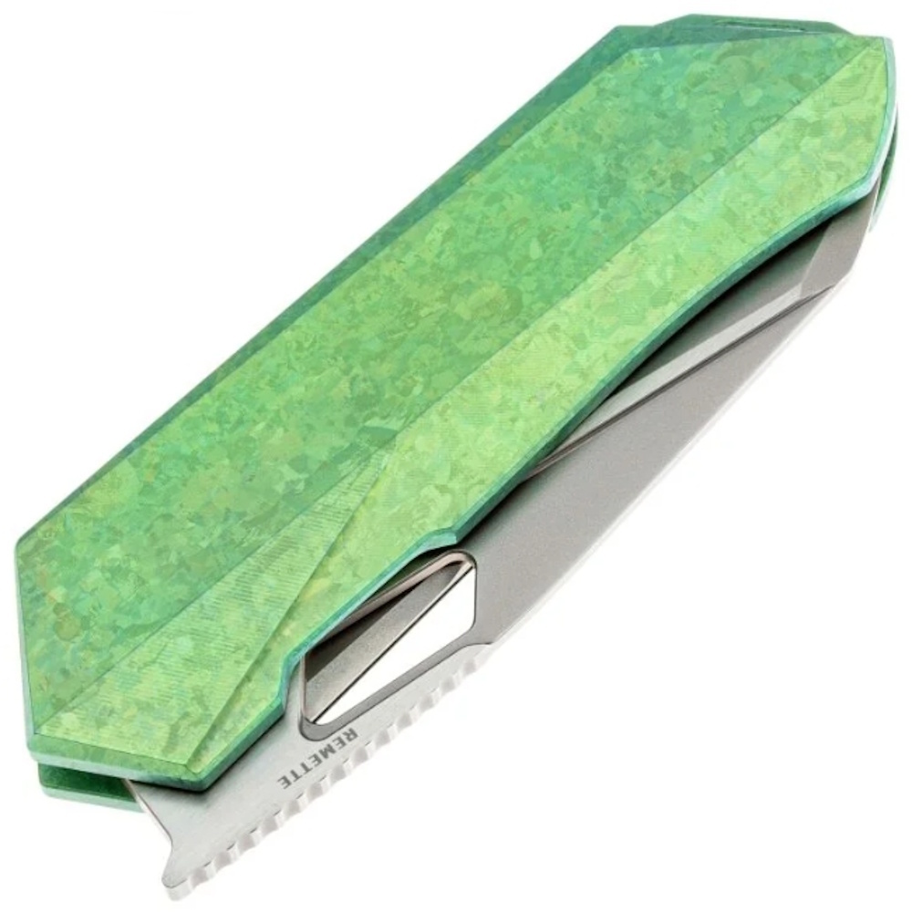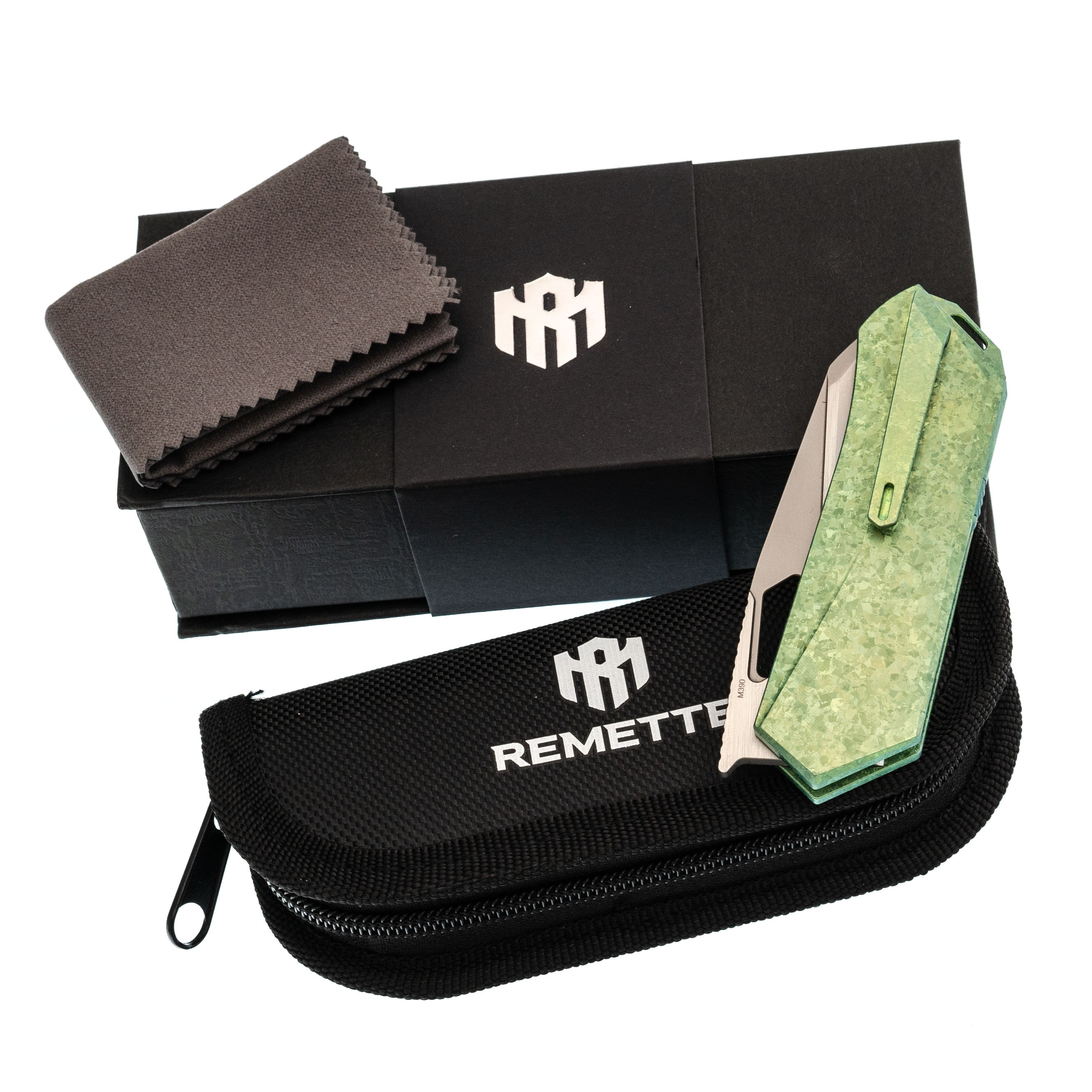 Рукоять из титана оформлена в насыщенном зеленом цвете, что придает модели выразительность и подчеркивает ее современный характер. Текстурированная поверхность и анатомический профиль обеспечивают уверенный хват, исключая проскальзывание даже при влажных условиях. Конструкция выдерживает длительное использование без потери эргономики, а легкость материала снижает усталость при работе. Точная подгонка деталей и надежная сборка подчеркивают общее качество исполнения, соответствующее философии бренда Remette.