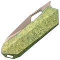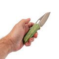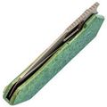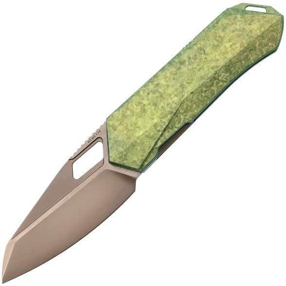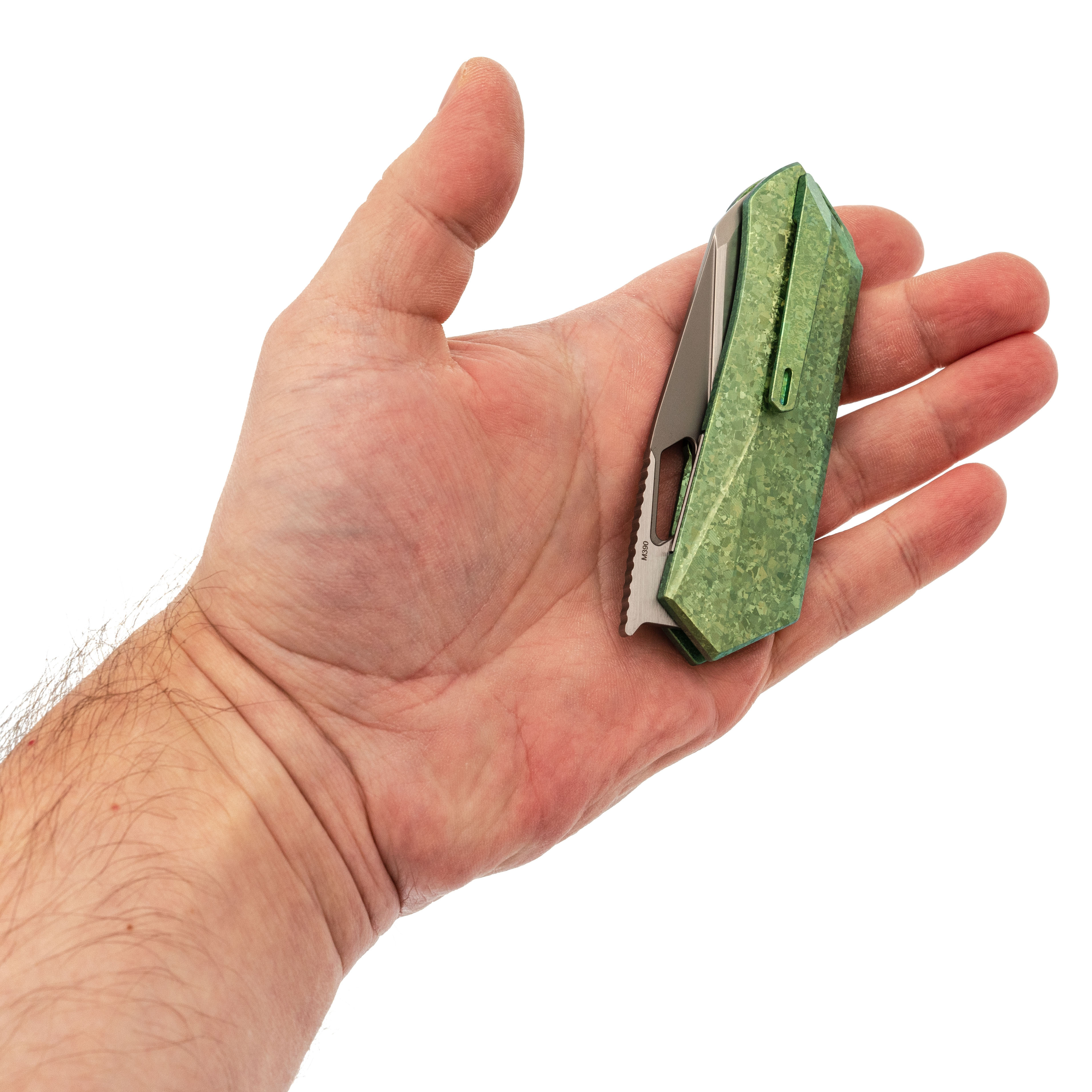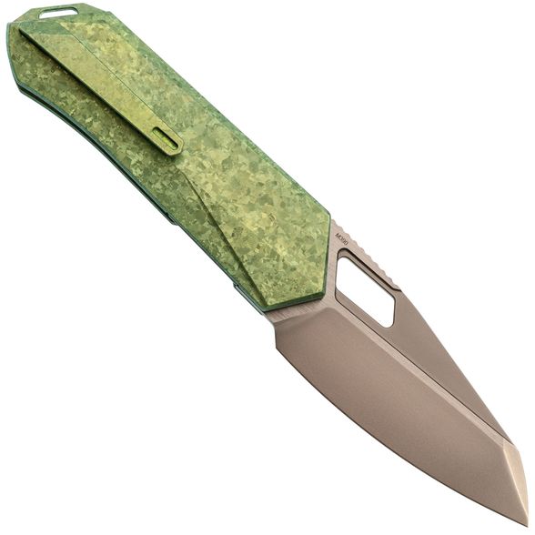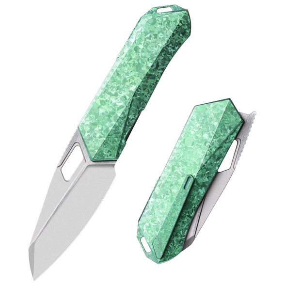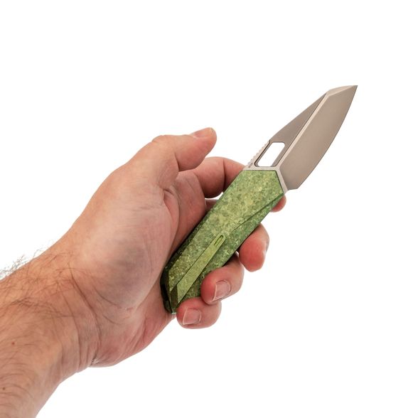 - Титан - прочный и легкий металл, устойчивый к механическим нагрузкам, влаге и температурным перепадам. Применение титана в конструкции рукояти снижает общий вес, повышает долговечность и придает изделию современный внешний вид. Зеленое анодирование не только подчеркивает стиль, но и повышает устойчивость поверхности к царапинам и истиранию.
