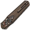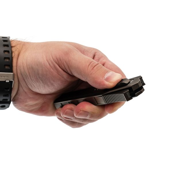 Клинок изготовлен из премиальной порошковой стали M390, которая славится своей способностью долго сохранять остроту и устойчивостью к коррозии. Такое сочетание характеристик делает эту сталь идеальным выбором для высококачественных ножей. Поверхность клинка покрыта черным DLC-покрытием, которое обеспечивает максимальную защиту от коррозии и придает ему привлекательный матовый черный цвет. Геометрия клинка выполнена в стиле Clip-Point с высокими прямыми спусками, что обеспечивает универсальность и превосходные режущие качества. Нож легко справляется с различными задачами.