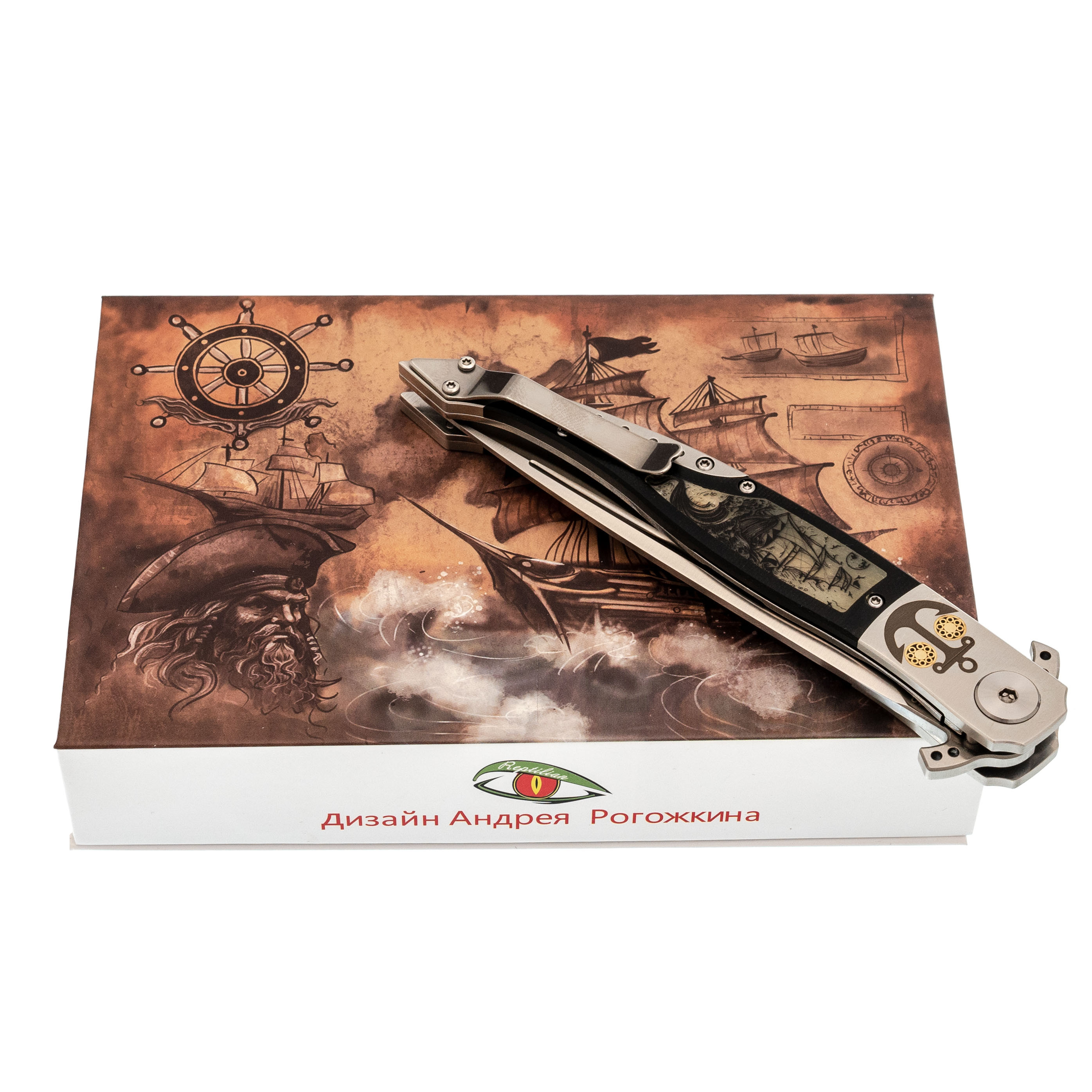 Reptilian "Билли Бонс" - крупный складной помощник с яркой морской эстетикой и акцентом на детали. Универсальный профиль Drop-Point делает модель понятной и удобной в быту и на природе.