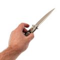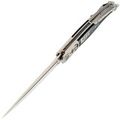 Drop-Point с высокими прямыми спусками отлично режет продукты, коробки и материалы для работы по дому. Форма и очень деликатный кончик дают отличное протыкание, но ковырять кончиком не стоит. Запуск через флиппер быстрый и интуитивный, фиксация - надёжный Liner-Lock.
