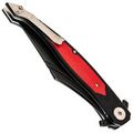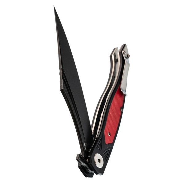 Высокие прямые спуски отвечают за хороший рез, а форма и очень деликатный кончик - за отличное протыкание при точных задачах. Не стоит использовать кончик как "шило" для ковыряния. Извлечение клинка - через флиппер; фиксация в работе - Liner-Lock.
