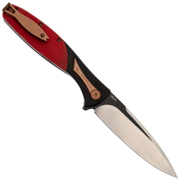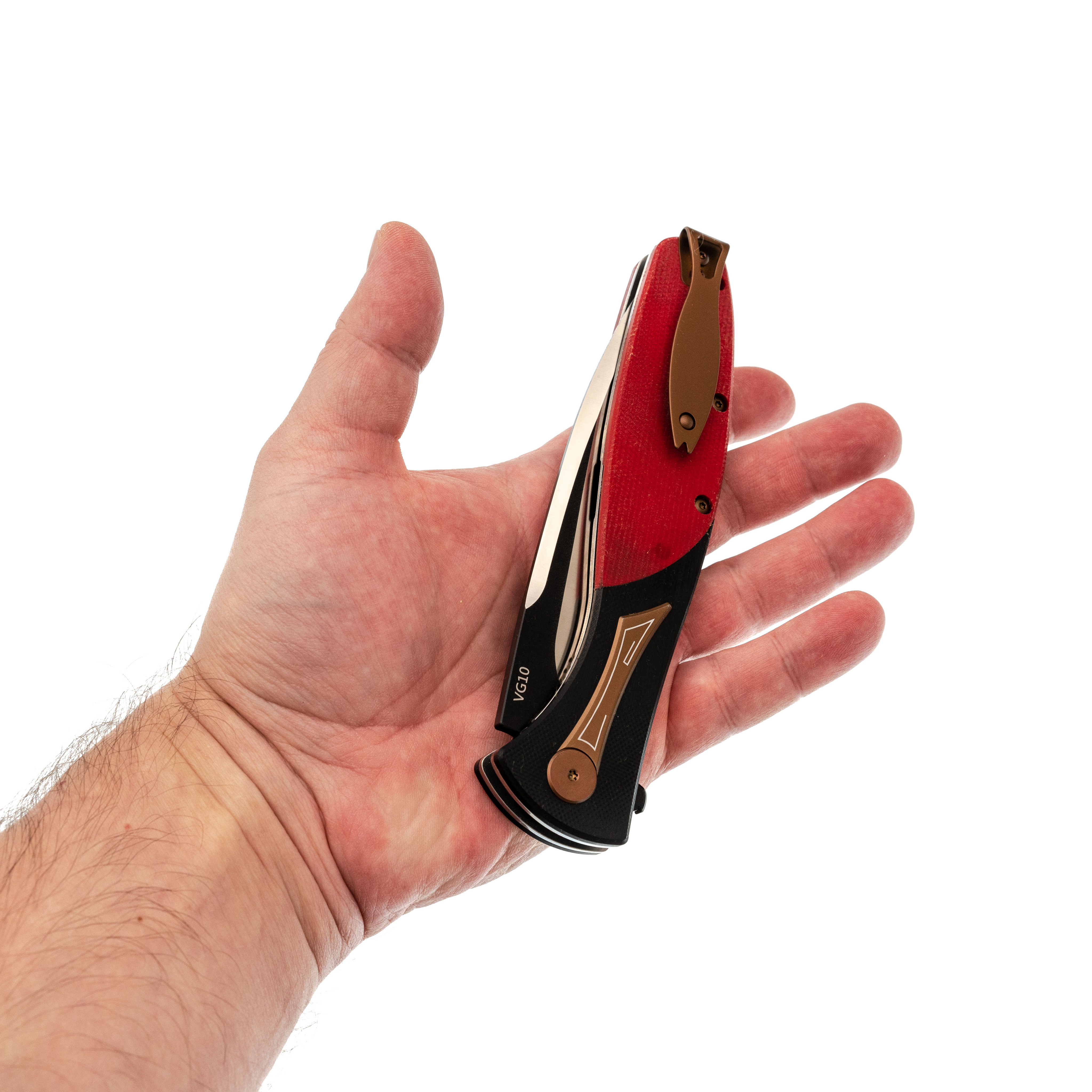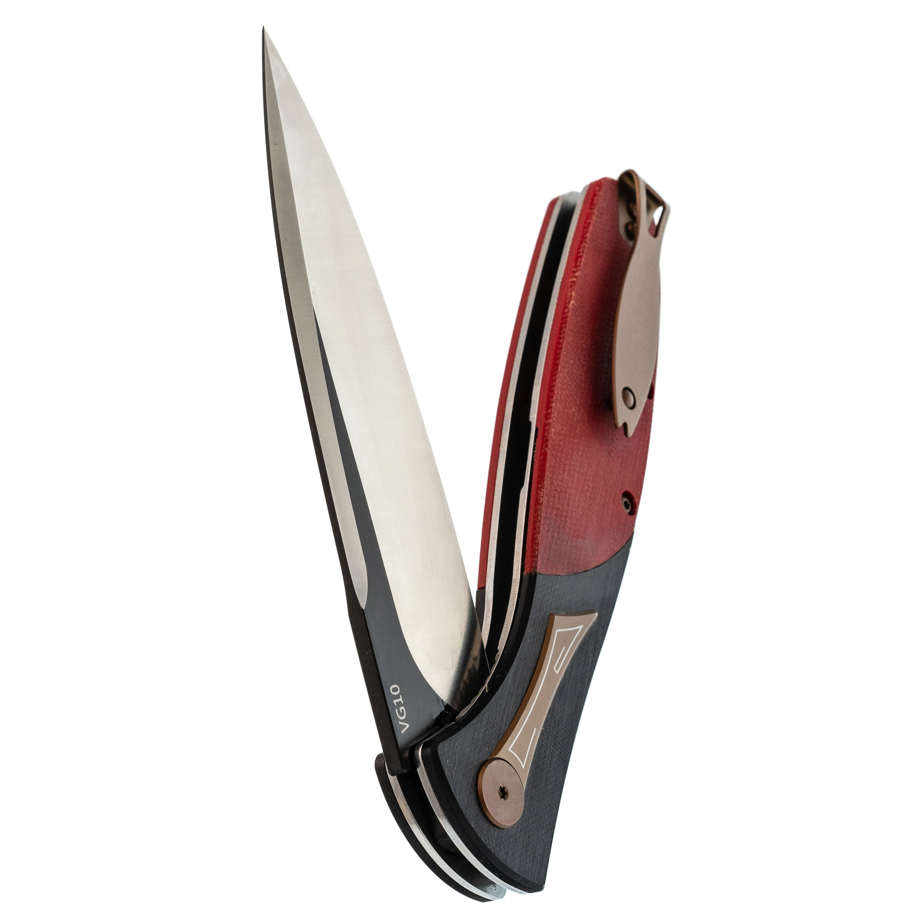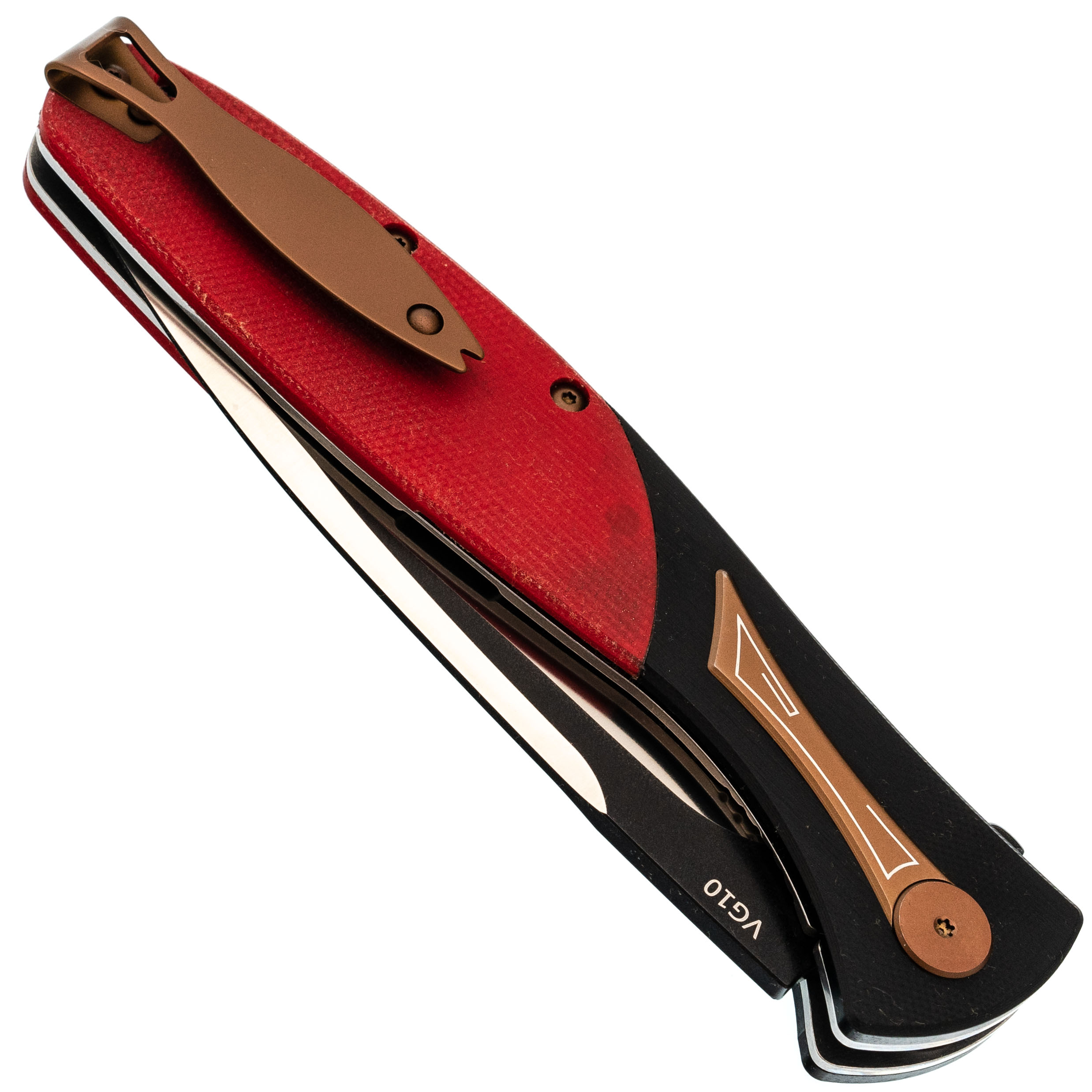 Складной нож Reptilian Корюшка-02, сталь VG-10, рукоять черный G10/красная микарта