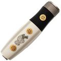 Рукоять ножа выполнена из G10 и имеет форму бочонка, что обеспечивает удобный захват и надежную фиксацию в руке. Эта двусоставная рукоять выглядит стильно благодаря мозаичным пинам и позволяет комфортно работать продолжительное время.