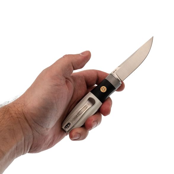 Складной нож Лесовик от Steelclaw - это хороший выбор для всех, кому требуется надёжный инструмент с классическим дизайном и высококачественными материалами. Вдохновленный традициями, он сочетает в себе элегантность и практичность. Идеален для ежедневного ношения и выполнения множества задач. Привлекательный внешний вид с уникальными дизайнерскими решениями и яркими акцентами делает его не только рабочим инструментом, но и стильным аксессуаром. Выпущен в ограниченном количестве - всего 153 экземпляра.