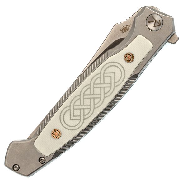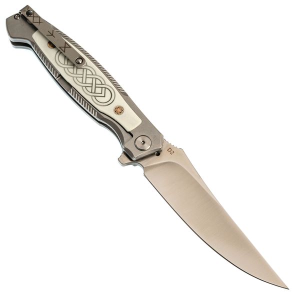 Хороший нож. Красиво необычно исполнен. Само собой ни каких люфтов. За счет этого тяжеловат, хотя "тяжесть это хорошо это надежно"