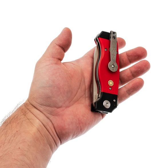 Рукоять ножа имеет эргономичный дизайн с выемками и изгибами, которые обеспечивают комфортное и безопасное удержание. Нож легко носить с собой благодаря карманной клипсе, а также имеется темлячное отверстие для тех, кто предпочитает персонализировать свои инструменты.