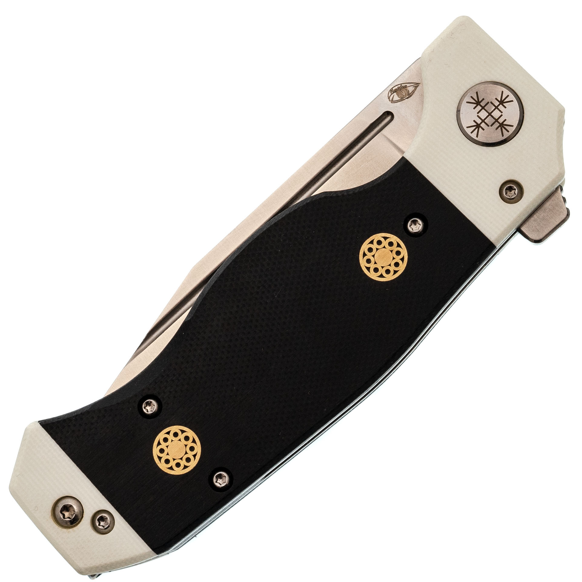 Рукоять ножа выполнена с учётом эргономики: её форма с изгибами и выемками надёжно фиксирует нож в руке, обеспечивая безопасность и комфорт. Дополнительно нож оснащён карманной клипсой для удобного ношения и темлячным отверстием для тех, кто любит украшать свои инструменты.