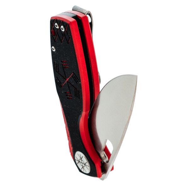 Reptilian Тобол-01 – это среднеразмерный складной нож, предназначенный для выполнения самых разных задач. Его дизайн максимально утилитарен, что делает нож универсальным помощником в повседневной жизни. Отсутствие лишних декоративных элементов, но при этом лаконичность форм, позволяет ножу сочетать простоту и функциональность. Однако, несмотря на свою сдержанность, нож привлекает внимание благодаря рунической символике, которая аккуратно встроена в элементы конструкции. Этот контраст между утилитаризмом и мистикой старинных знаков придает изделию особый характер и запоминающийся вид.